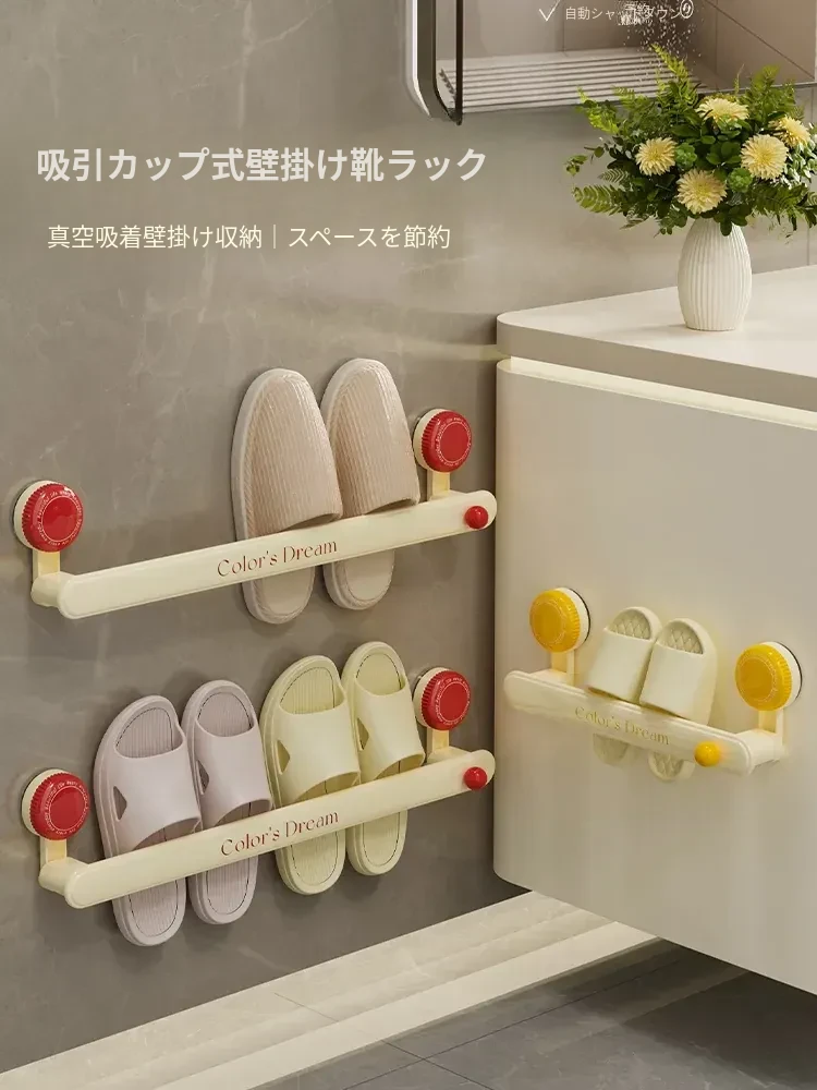 吸盤式バスルームスリッパラック - 穴あけ不要の壁掛け収納、家族みんなに最適な水切り機能付き!多機能スリッパハンガーでトイレもスッキリ整理!