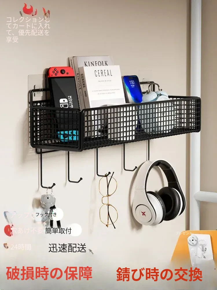 壁掛け収納ラック 寝室に最適!打孔不要のアイアンシェルフ 宿舎の必需品!スペースを有効活用し、すっきりとした空間を実現。上段ベッドにも最適な便利な収納ボックス!