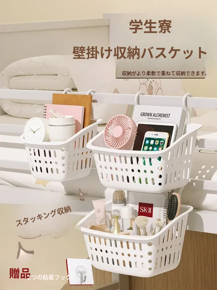 学生寮に最適!ベッドサイドハンギングバスケット - スマートフォンや小物を収納できる、穴あけ不要の便利な置物ラック。寝室をスッキリ整理整頓!