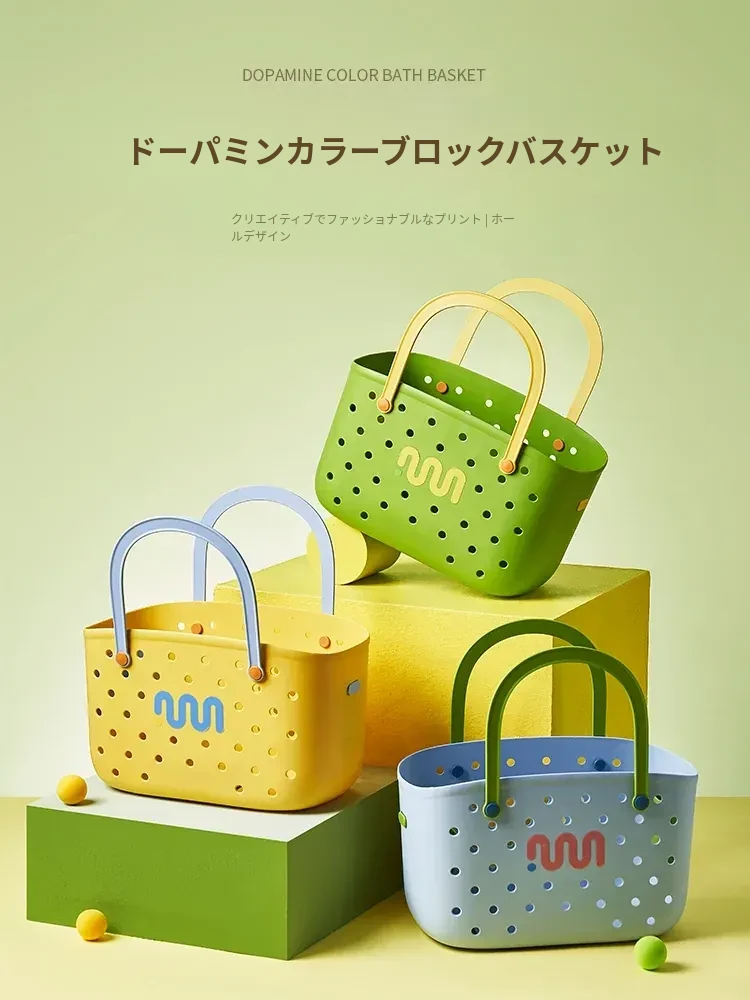 2025年新作!学生寮に最適な洗浴用バスケット - 手提げデザインで便利な収納、通気性抜群の水切り機能付き!おしゃれで実用的な洗面用具入れで、快適なバスタイムをサポートします!