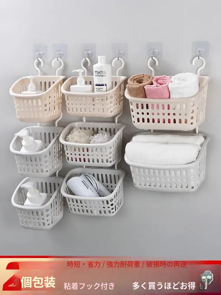 バスルームにぴったり!便利な壁掛け収納バスケット - プラスチック製の小型バス用バスケットで、衛生的な収納を実現!お風呂場やトイレに最適なアイテムです。シンプルでおしゃれなデザインで、スペースを有効活用しましょう!