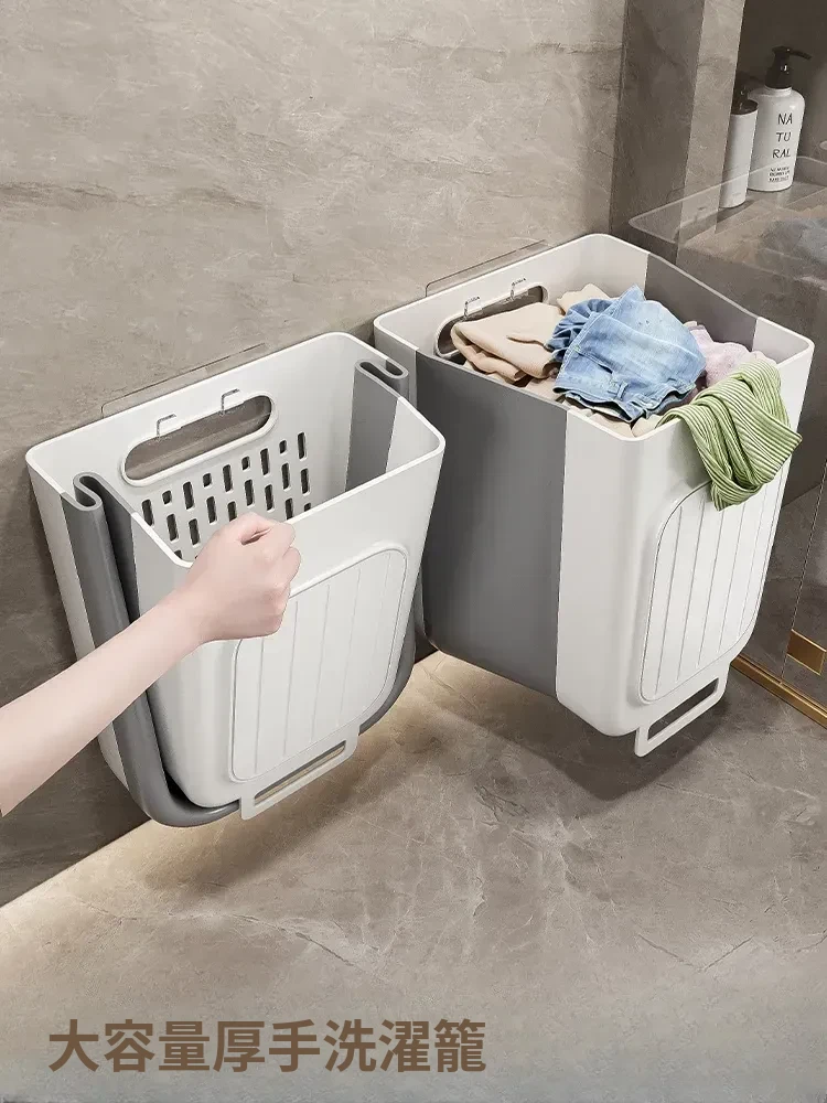大容量折りたたみ式壁掛けランドリーバスケット - お風呂やトイレにぴったり、洗濯物をすっきり収納!家庭で使いやすく、スペースを有効活用!