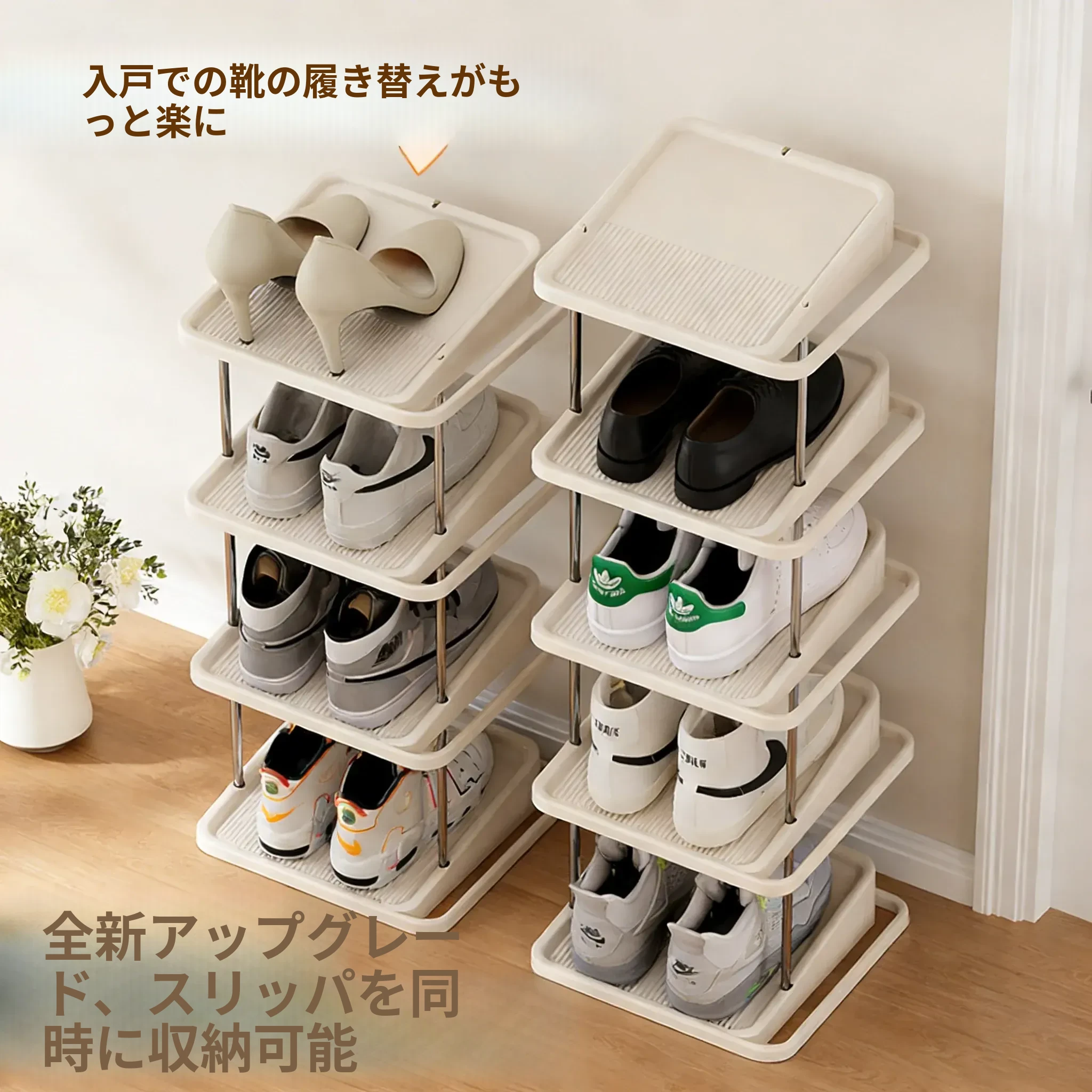 多層シューズラック - スペースを節約する靴収納マジック!家庭用スリッパ収納キャビネット内蔵仕切りで、靴をすっきり整理整頓。おしゃれで実用的なアイテムです!