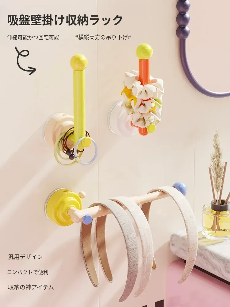 吸盤式ヘアゴム収納ラック - 無痕で清潔なバスルーム用ヘアアクセサリークリップ、ヘアバンドやゴム紐を簡単に掛けられるフック、穴を開けずにおしゃれに収納!