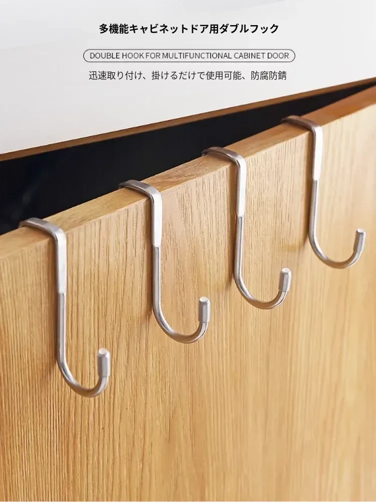 304ステンレス製 S字型ベッドサイドフック – 穴あけ不要で簡単取り付け!キッチンや寮、ドアの裏に最適な強力耐荷重ダブルフックで、衣類やバッグをスッキリ収納。