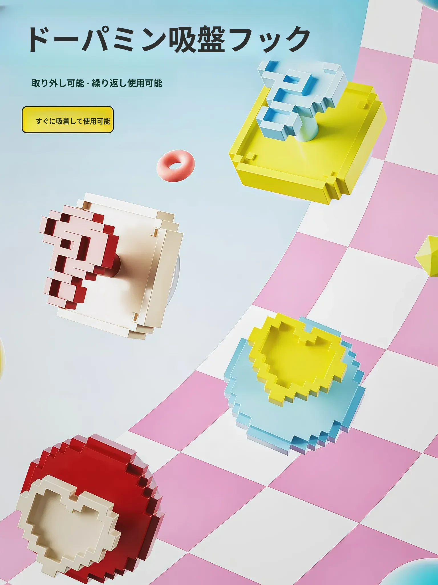 ドーパミン吸盤フック - 穴あけ不要で強力耐荷重!お風呂やトイレに最適な壁掛け真空無痕粘着フックで、スッキリ収納を実現!