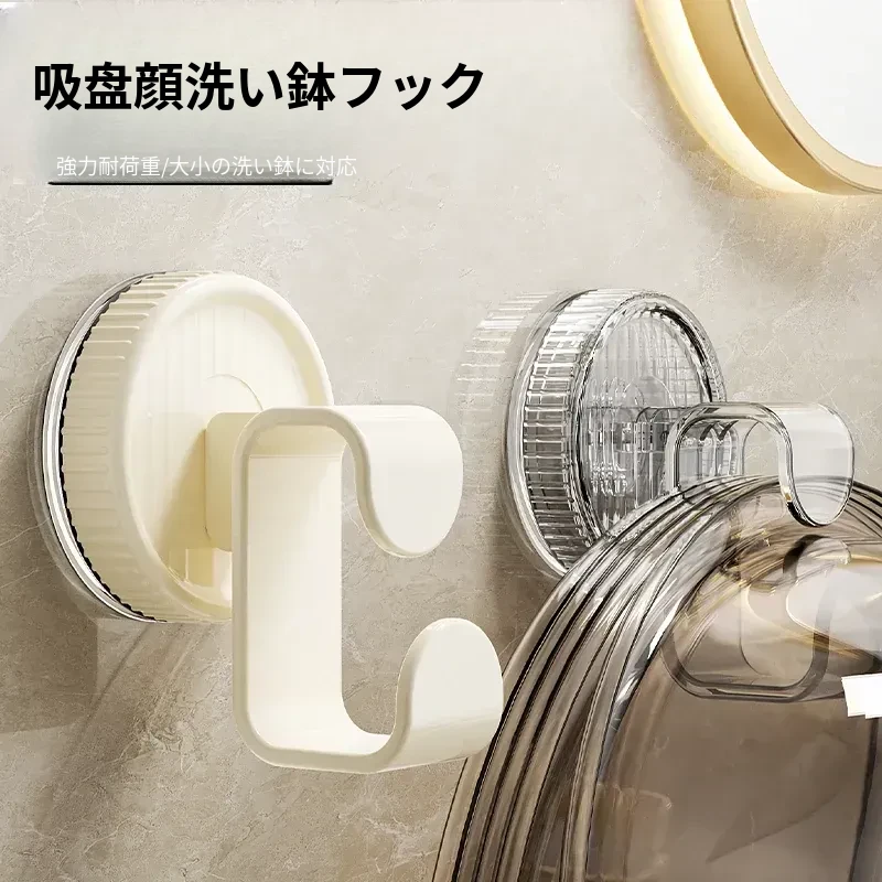 吸盤式洗面器フック - トイレやバスルームに最適!穴をあけずに取り付けられる壁掛け洗面器収納ラック、便利な洗面器整理アイテム!