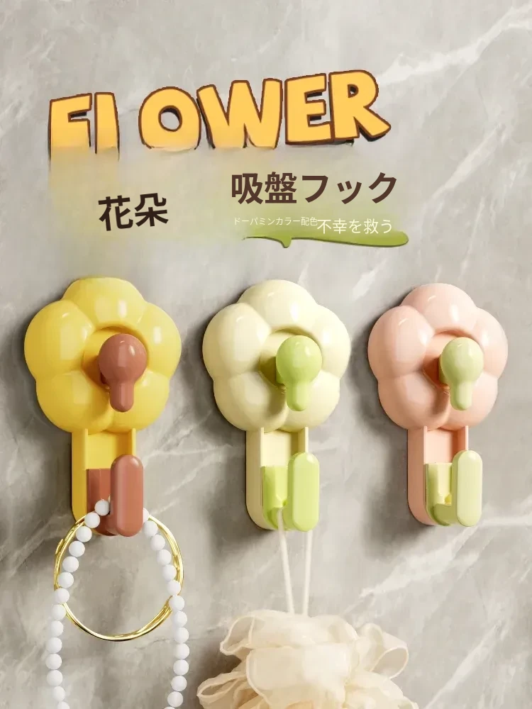 可愛らしい花のデザイン!真空吸盤フック、強力な粘着力で穴あけ不要。浴室・トイレ・キッチンに最適なクリエイティブな粘着フックで、場所を有効活用しましょう!