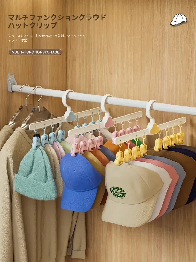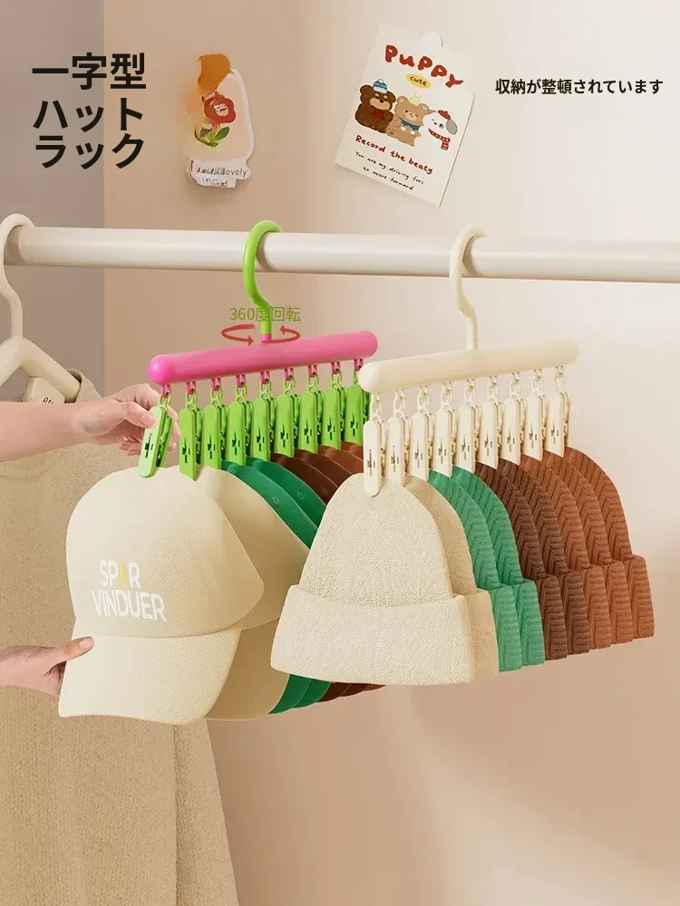 帽子収納の神アイテム!家庭用クローゼットに最適な多機能クリップフック、回転式ハンガーで無痕の掛け方が実現。寮生活にもぴったりの帽子と衣類をすっきり整理!