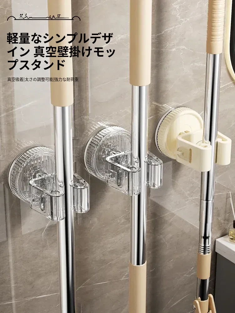 吸盤モップ壁掛けクリップ|トイレ・バスルームに最適!穴を開けずに簡単装着!モップやほうきをしっかり固定できる収納ラックで、スッキリ整理整頓!