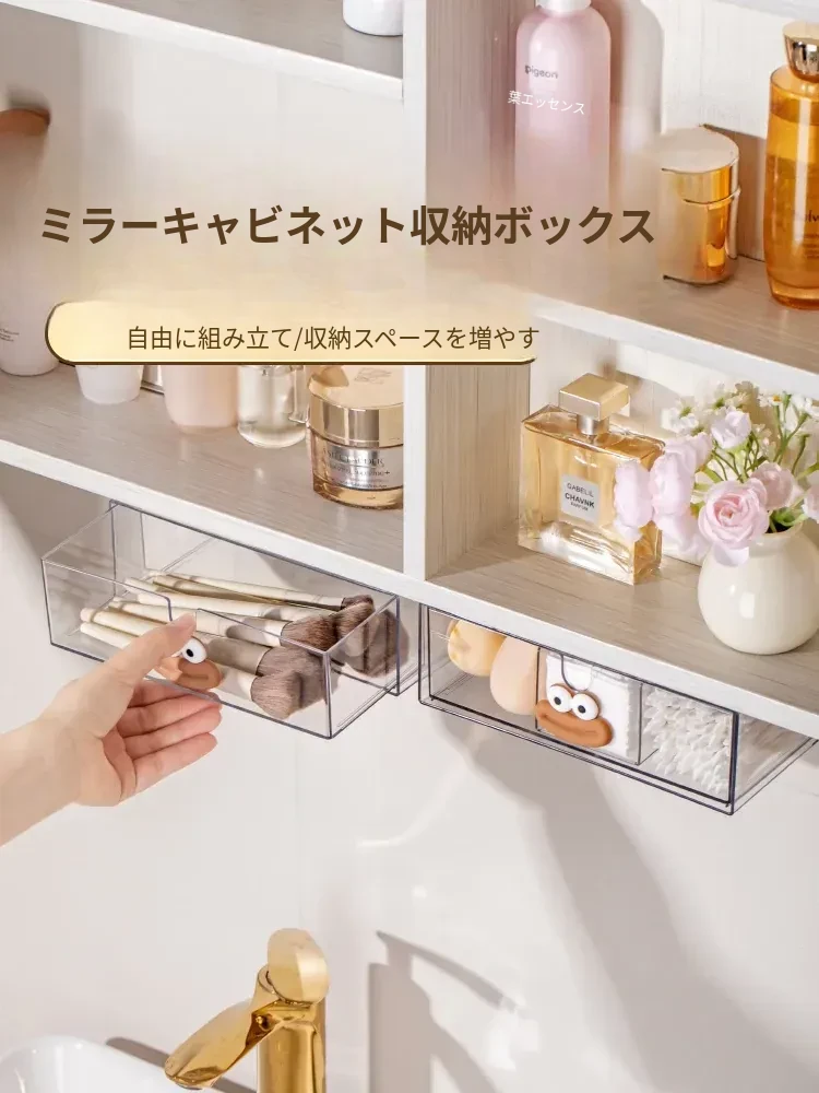 洗面台ミラーキャビネット下引き出し収納ボックス!バスルームの収納に最適な化粧品整理棚、仕切り付きで使いやすさ抜群!美しく整頓された空間を手に入れましょう!