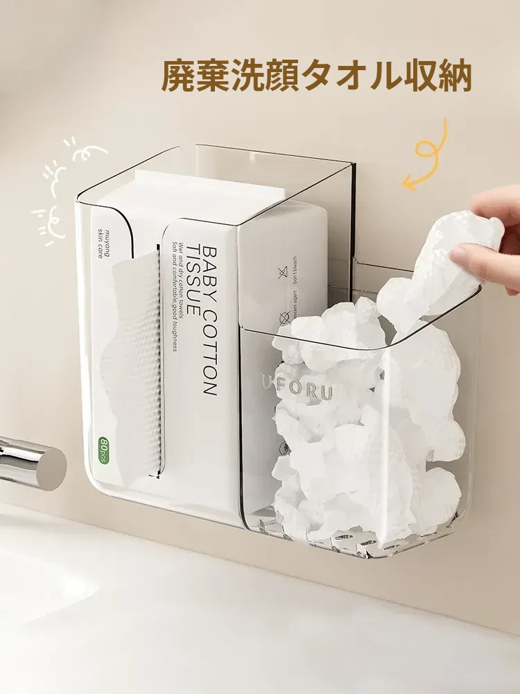 使い捨てフェイスタオル収納ボックス 壁掛けタイプ 二次利用可能なバスルーム収納ラック ウェットティッシュボックスとしても使える!清潔で便利なアイテムで、おしゃれなバスルームを実現!