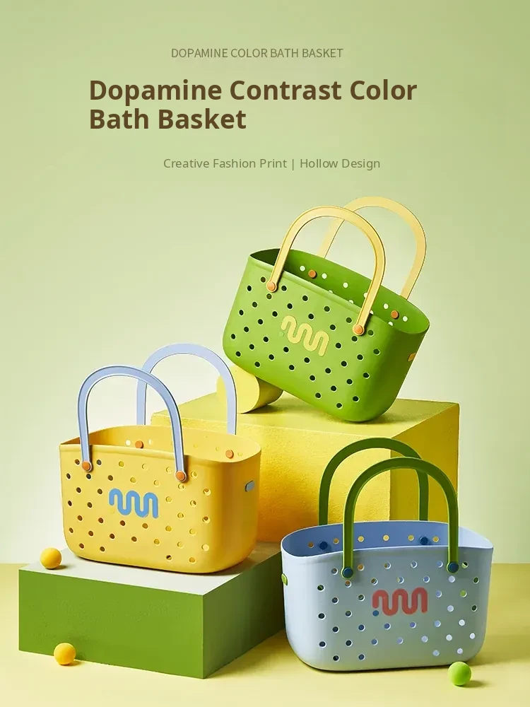Dopamine Shower Caddy - Stylish and Functional Bathroom Storage Basket for Students, Perfect for Dorms! Handheld, Hollow Design for Easy Organization in Your Bathroom.