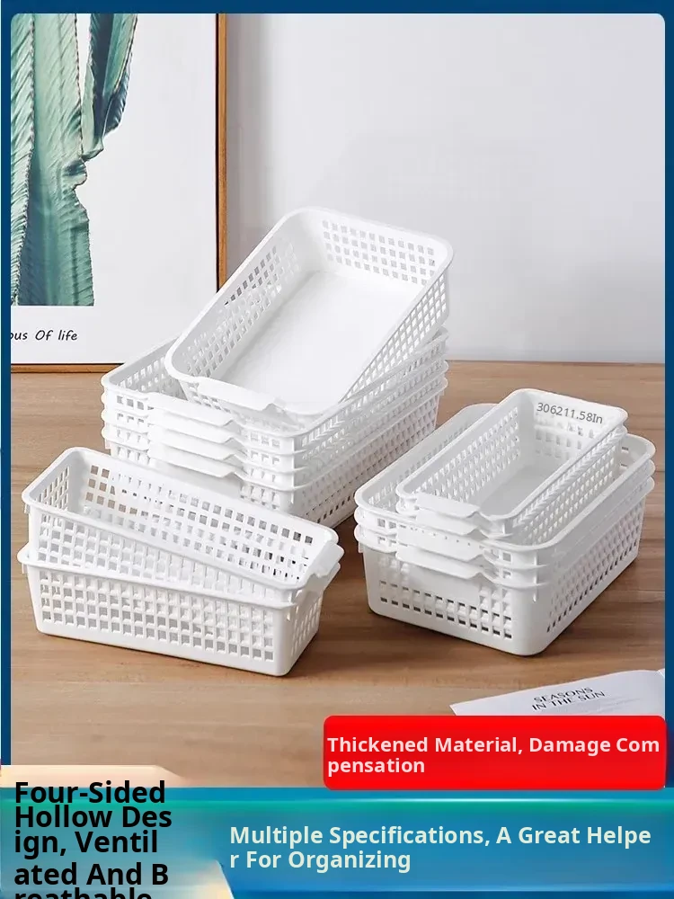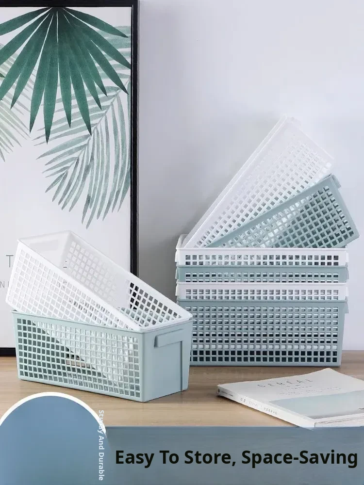 Stylish Hollow Desktop Storage Basket - Versatile Rectangular Plastic Organizer for Snacks, Essentials, and Miscellaneous Items - Convenient Handheld Design for Home or Office Use