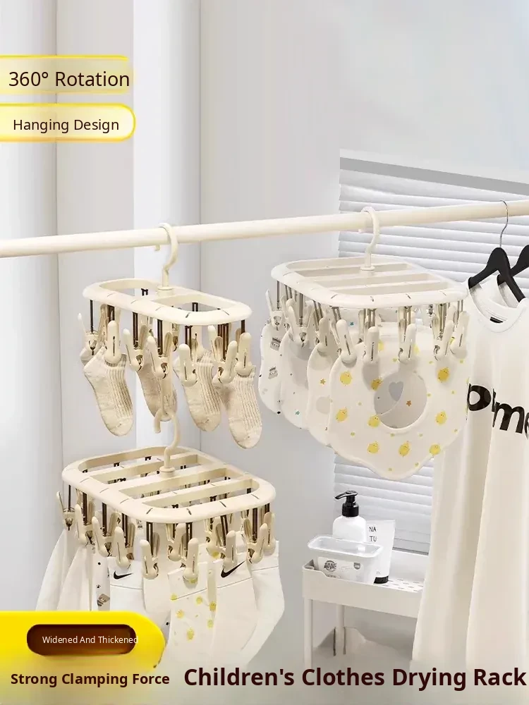 Multi-Functional Baby Sock Drying Rack with Clips - Home Use Clothes Pegs for Hanging Underwear and Socks on Balcony, Perfect for New Parents!