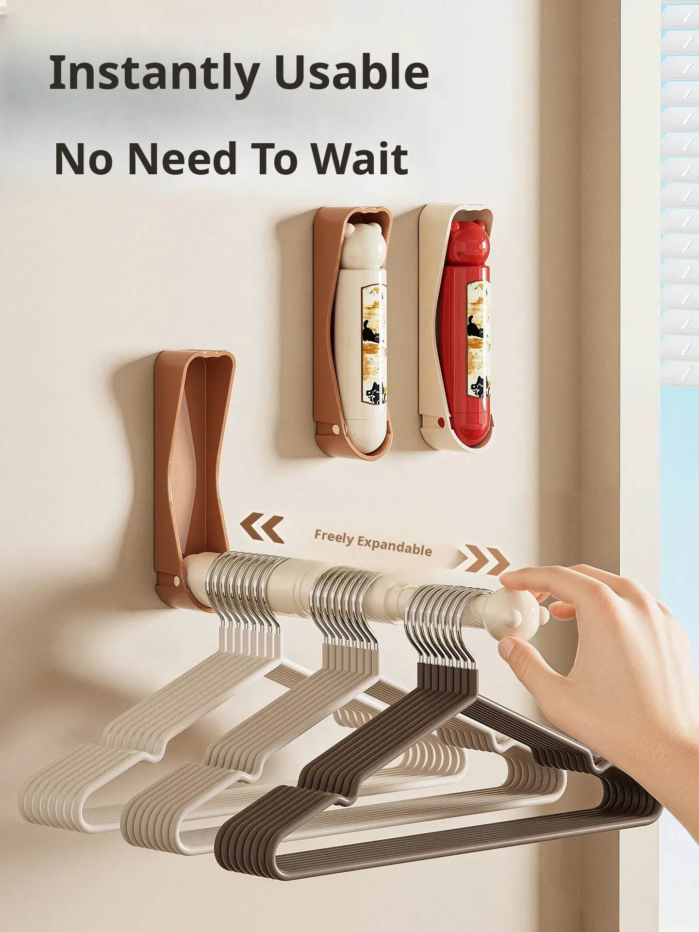 Multi-Functional Wall-Mounted Clothes Hanger Organizer - No Drilling Required, Adjustable Space-Saving Rack for Balcony and Home Use, Perfect for Hanging and Storing!