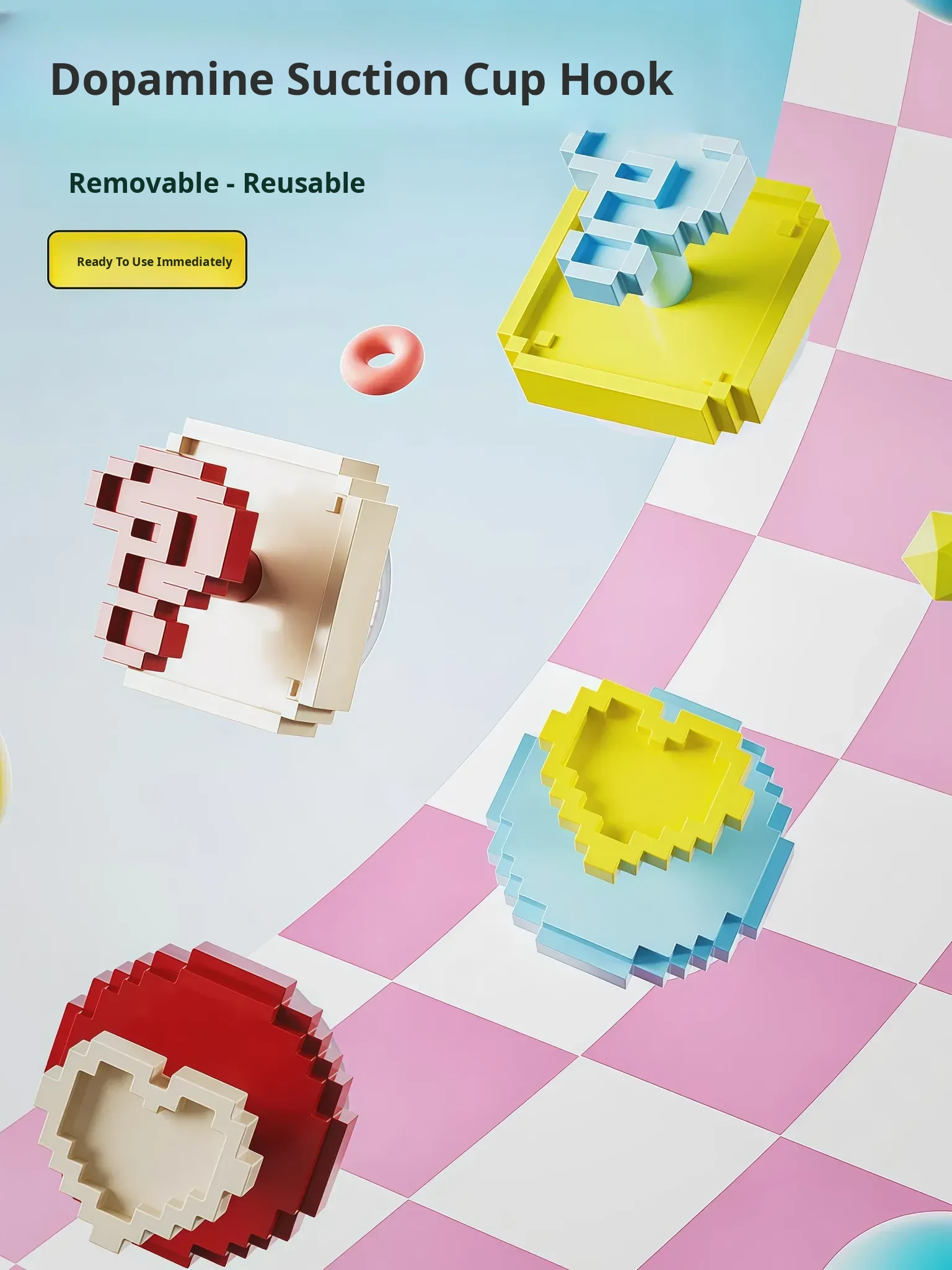 Dopamine Wall-Mounted Adhesive Hooks - Heavy-Duty No-Drill Suction Hooks for Kitchen, Living Room, and Bathroom - Effortless, Damage-Free Storage Solution!