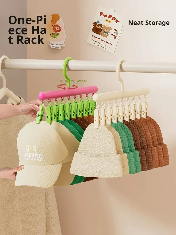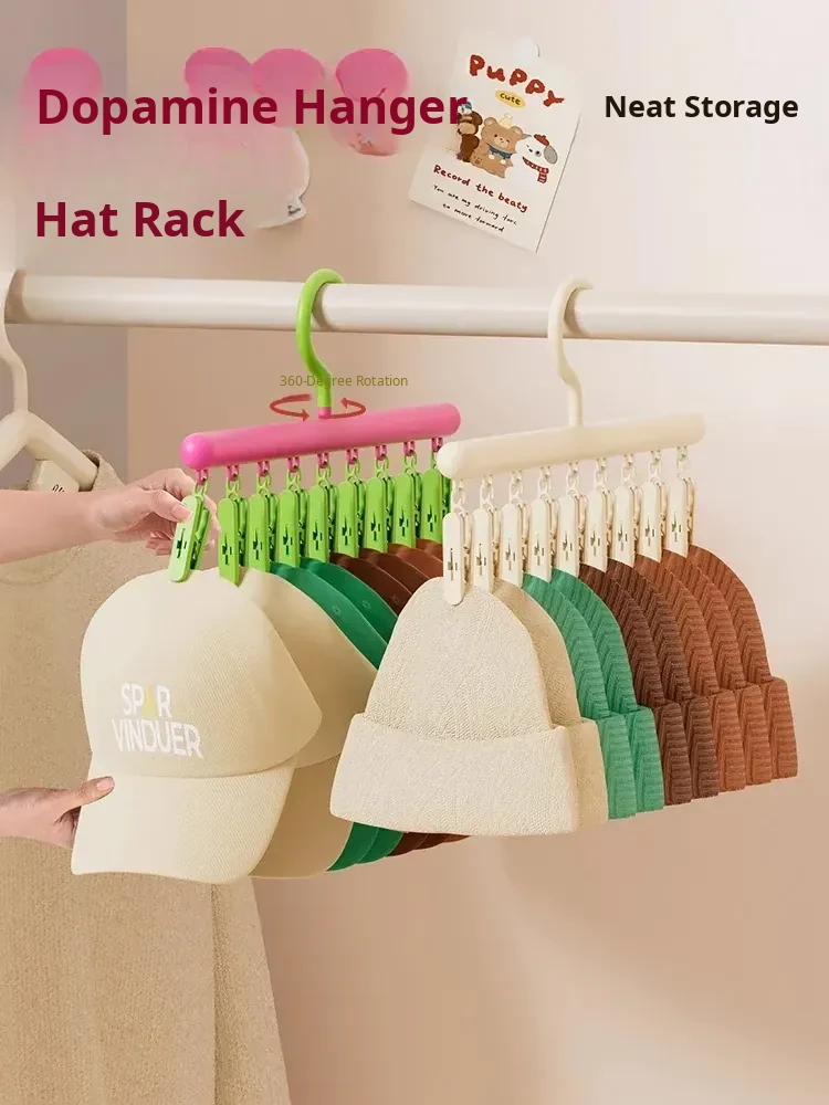 Dopamine Hat Organizer - Innovative Rotating Hook Rack with Clips for Home Closet, No-Trace Design, Perfect Clothes Drying Solution for Dorms and Small Spaces