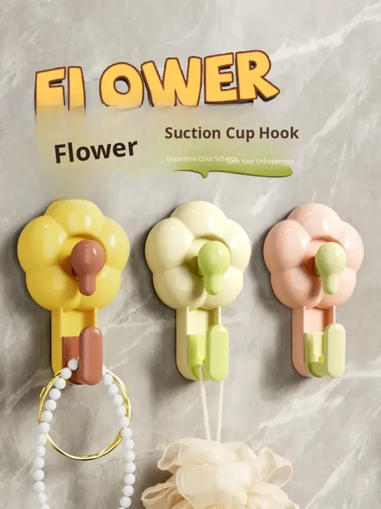 Creative Cute Flower Suction Hooks - Strong Vacuum Adhesive, No Drilling Required, Heavy-Duty for Bathroom, Toilet, and Kitchen. Perfect for Easy Installation and Stylish Organization!
