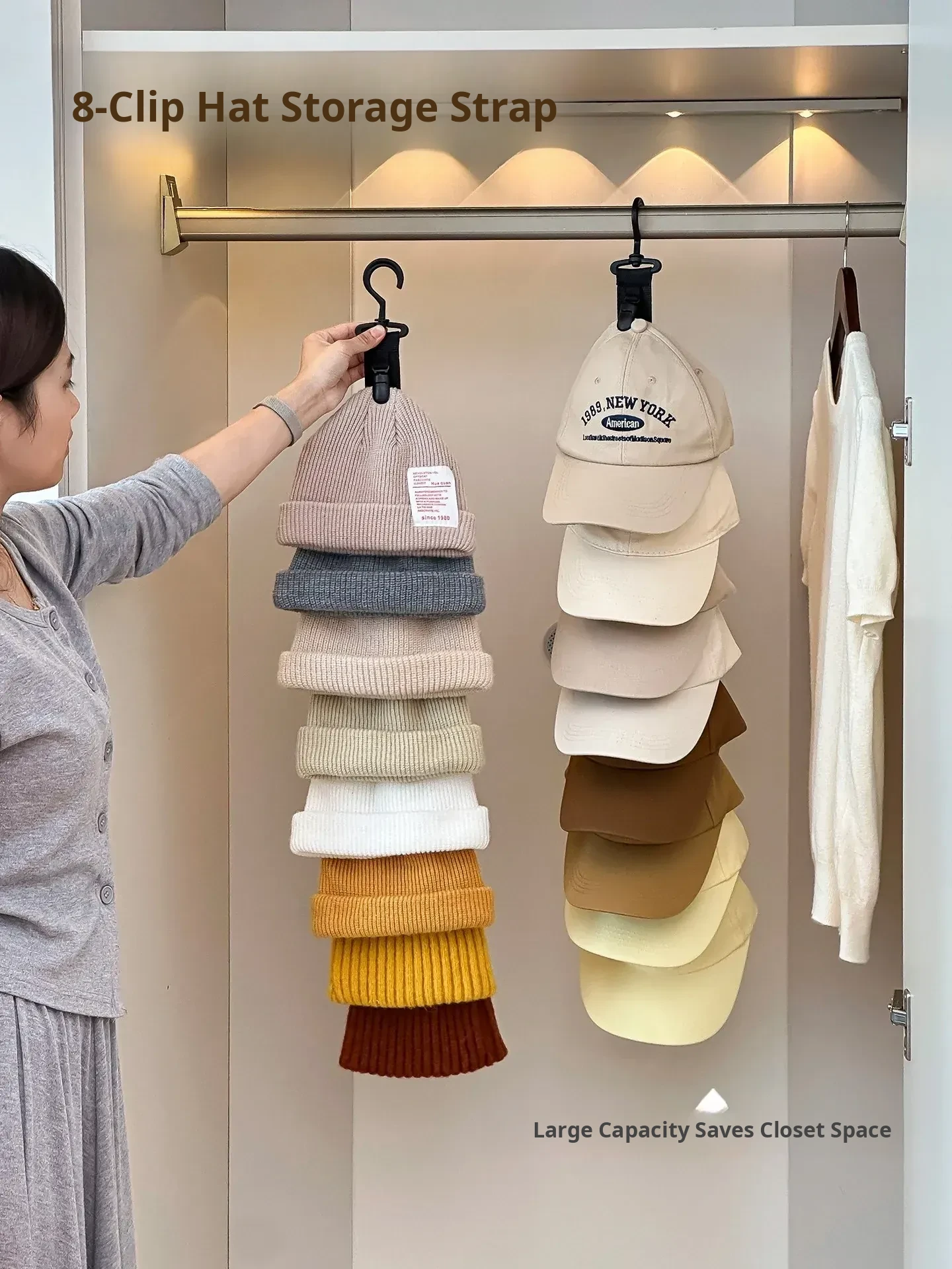 Hat Storage Organizer - Home Closet Door Hat Rack for Caps and Beanies, Space-Saving Design, Perfect for Dorms and Bedrooms, Keeps Hats in Shape and Neatly Organized!