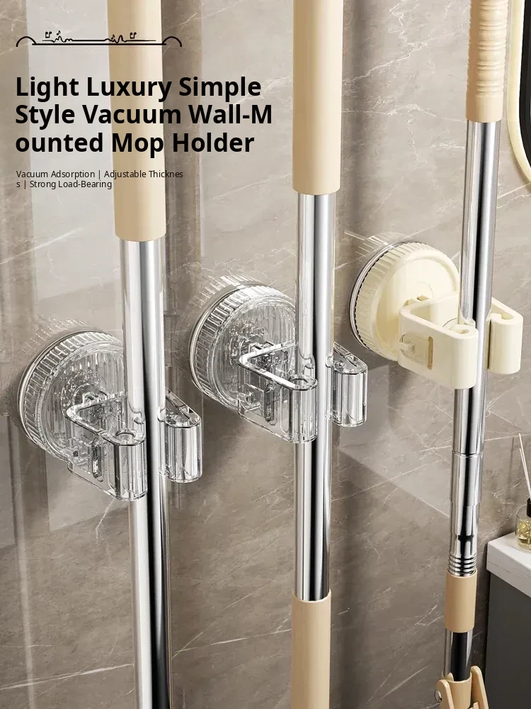 Suction Mop Wall Mount Holder - No Drill Needed, Perfect for Bathrooms! Keep Your Mop, Broom, and Cleaning Cloths Organized with This Space-Saving Storage Solution!
