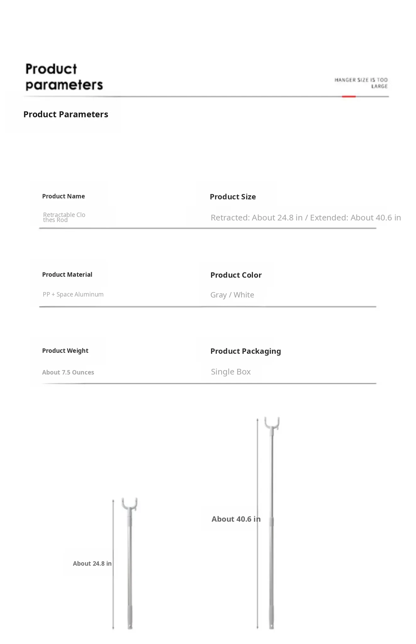 Gray Short Style [Free Retractable 24.80in-40.55in]