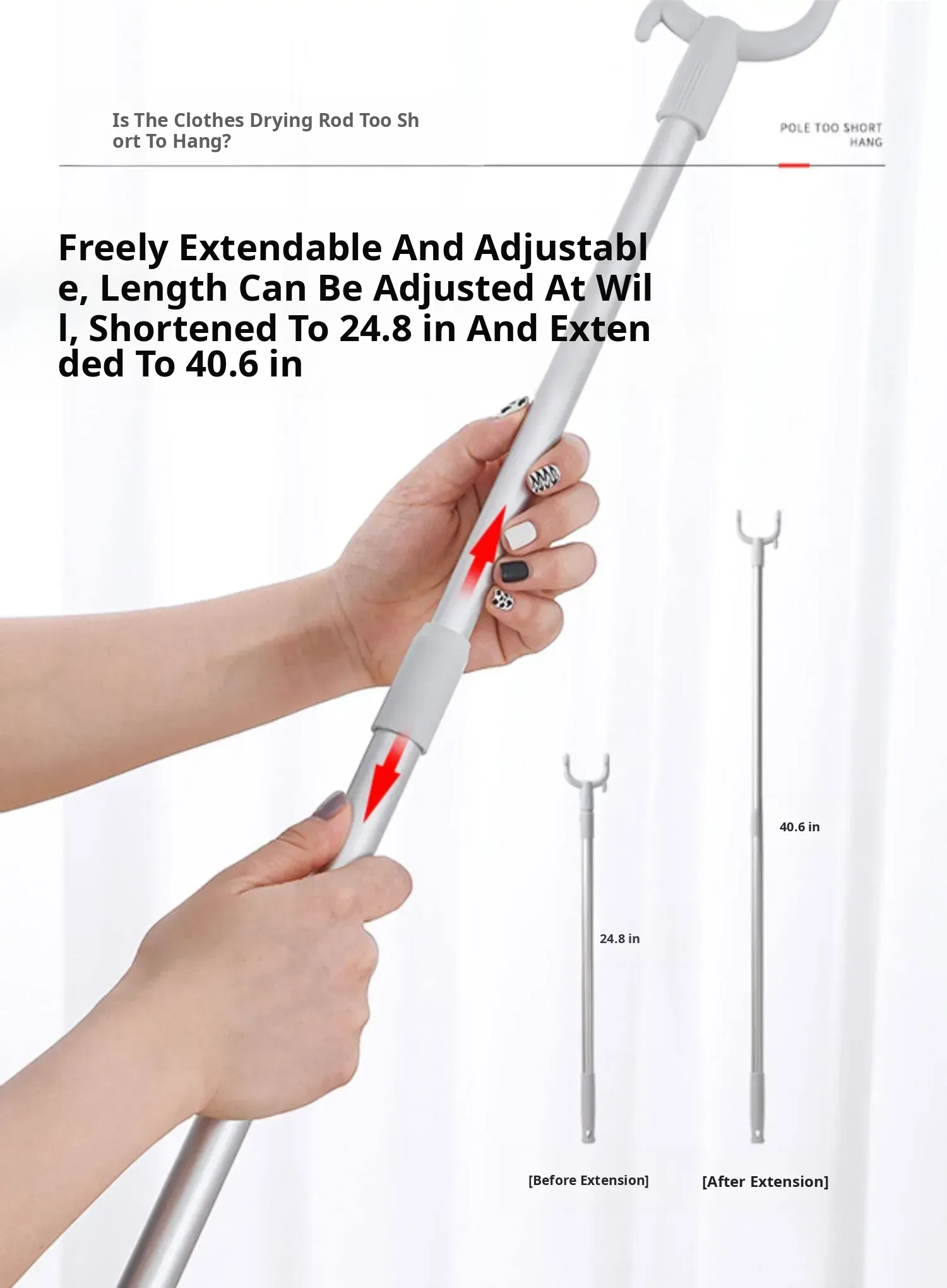 Adjustable Clothes Drying Rod - Home Clothes Hanger with Multi-Function Hooks for Easy Garment Access and Efficient Drying - Perfect for Any Laundry Room!