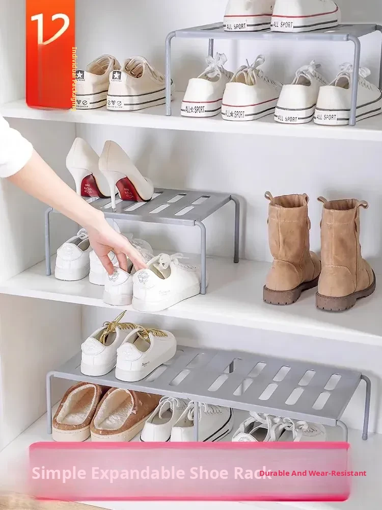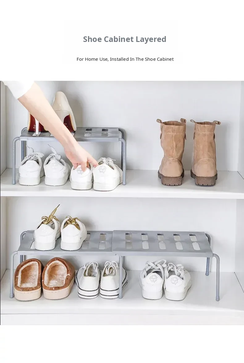 Adjustable Double-Layer Shoe Rack Organizer - Space-Saving Stacked Shoe Holder for Students' Dorms, Expandable and Versatile Design to Keep Your Shoes Neat and Tidy!