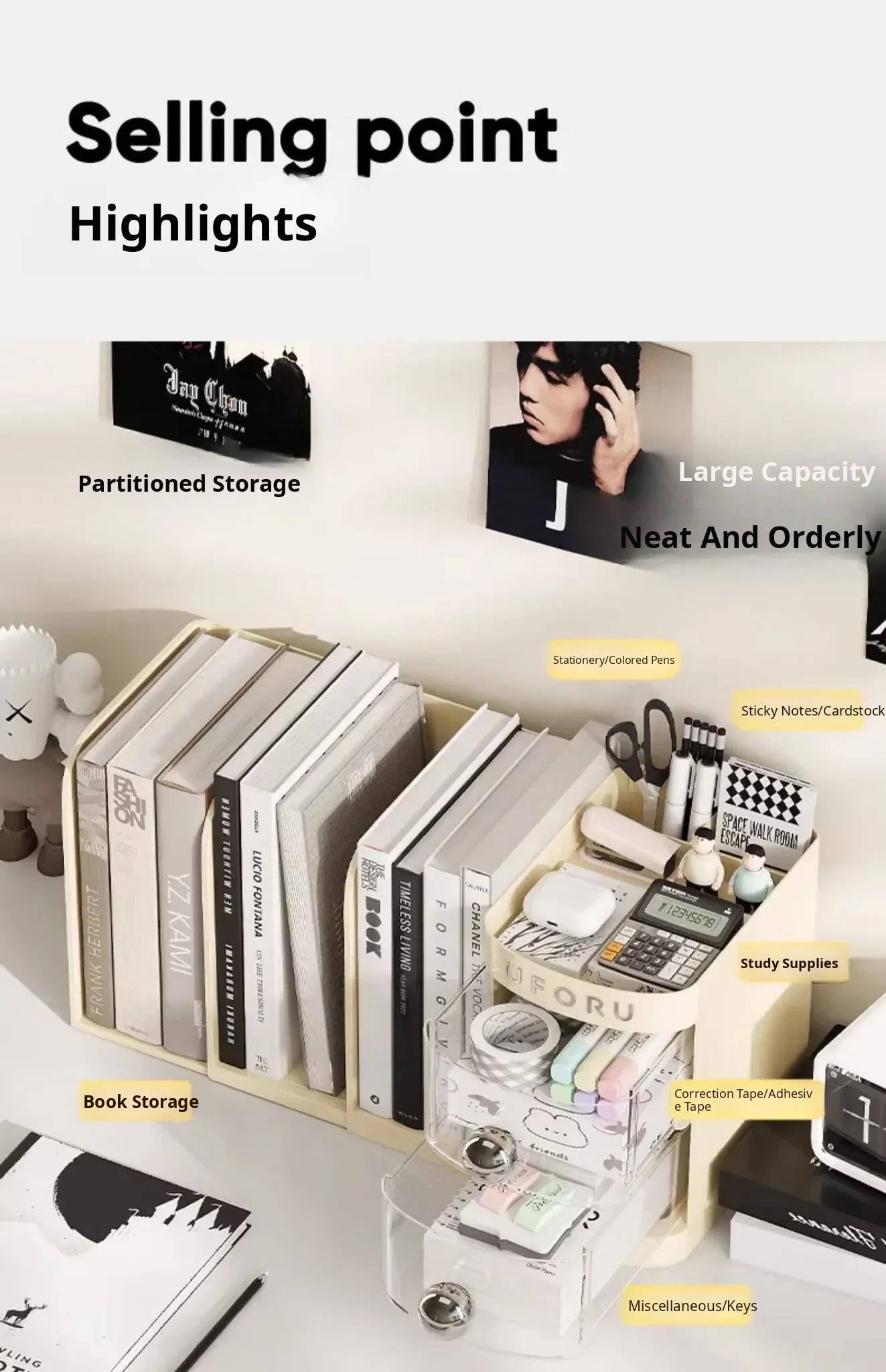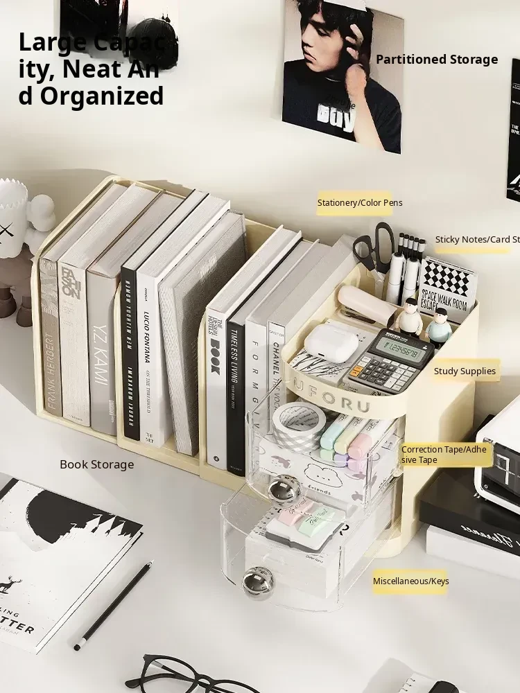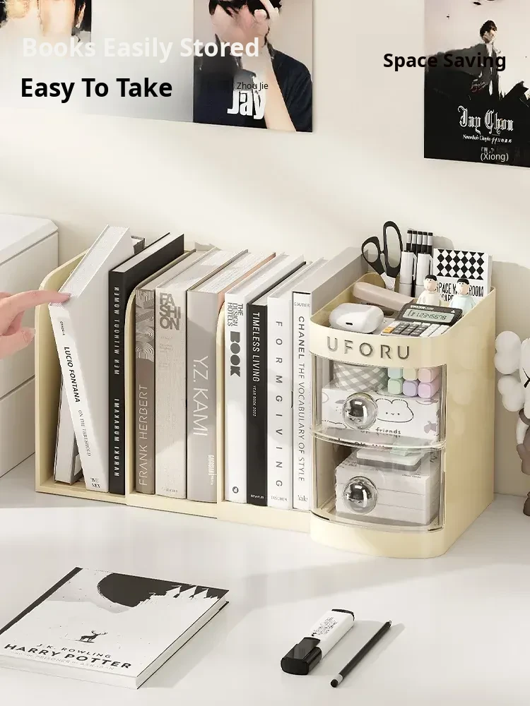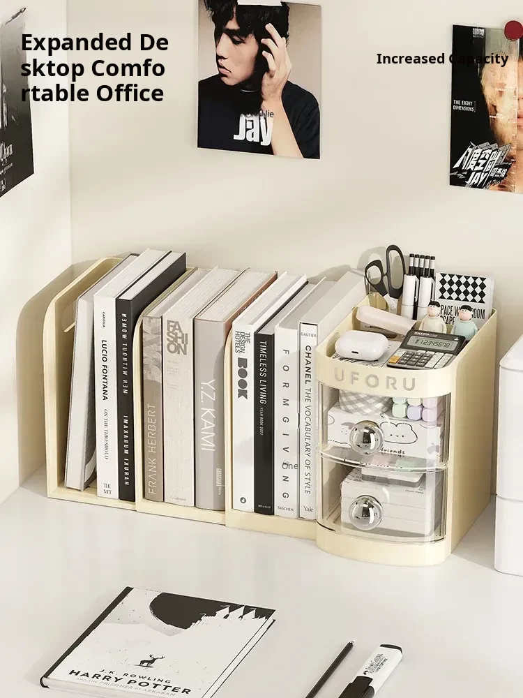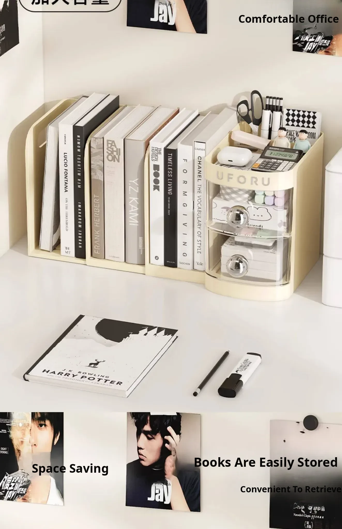 Desktop Book Stand and Organizer Box - Office Document Divider, Drawer-Style Pencil Holder, and Book Storage Rack for Students - Keep Your Workspace Tidy and Efficient!