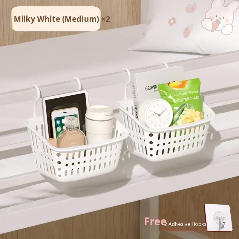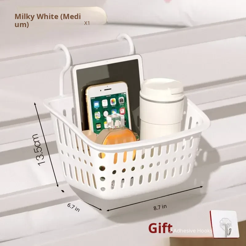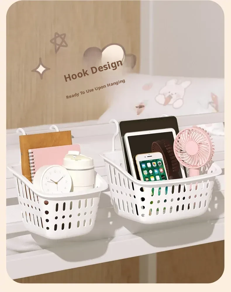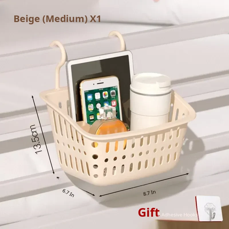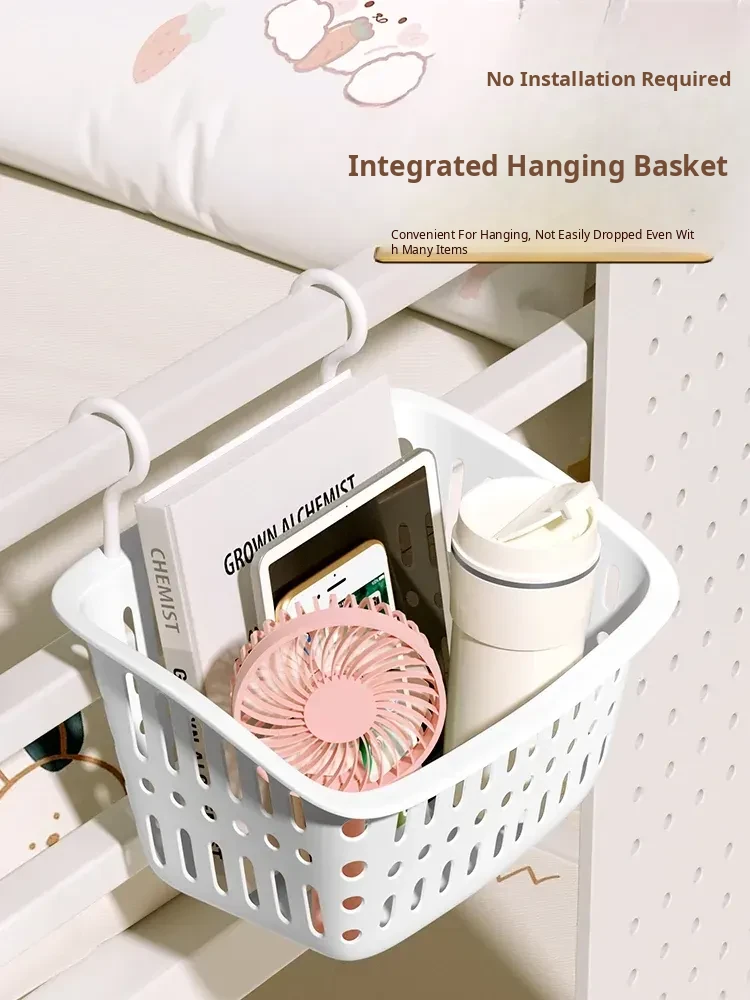 Dorm Room Bedside Hanging Basket - No Drill Storage Rack for Upper Bunk Bed, Perfect for Phones and Essentials, Space-Saving Organizer for Student Life