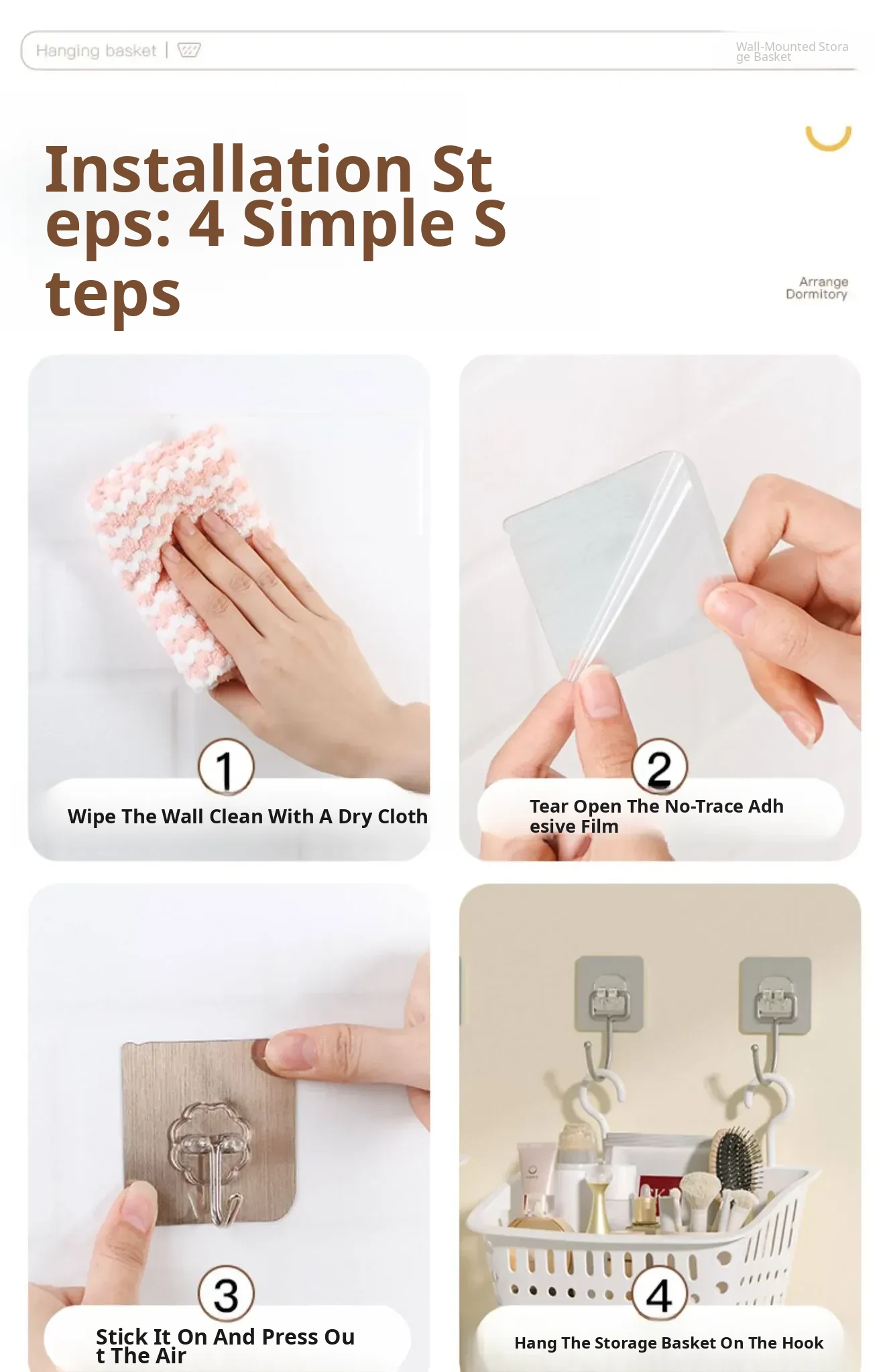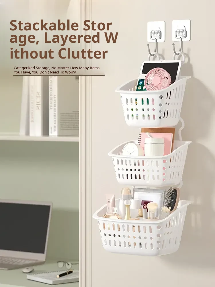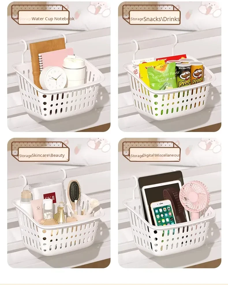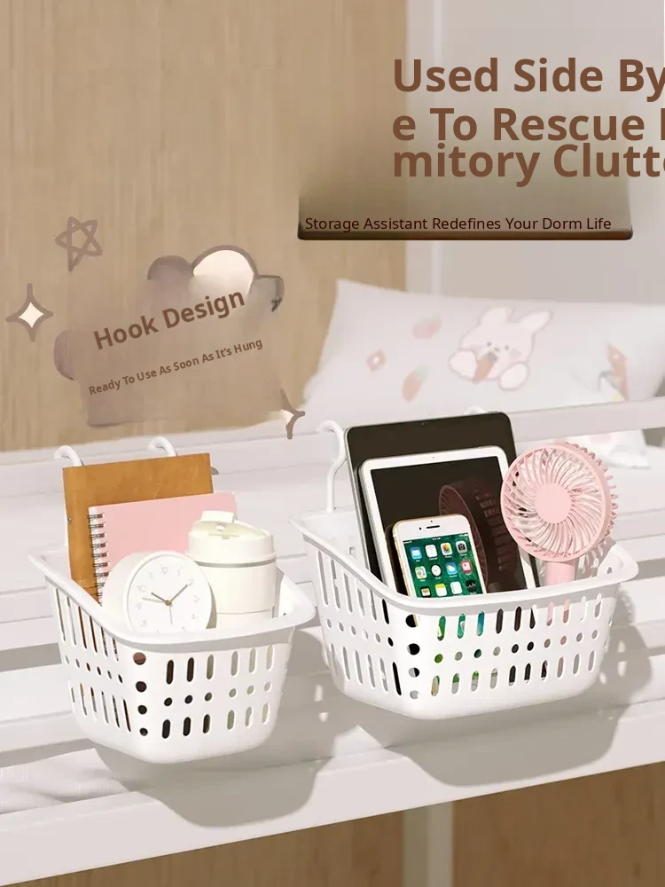 Dorm Room Bedside Hanging Basket - No Drill Storage Rack for Upper Bunk Bed, Perfect for Phones and Essentials, Space-Saving Organizer for Student Life