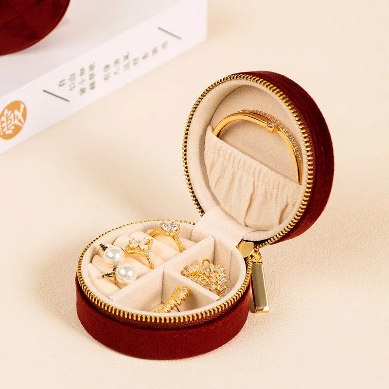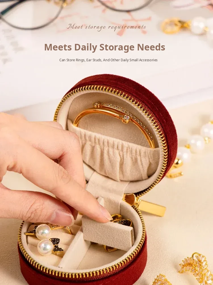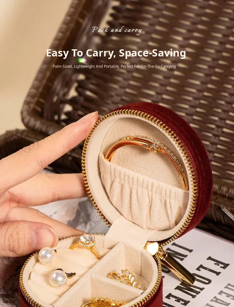 Elegant Portable Jewelry Box for Gold Accessories - Compact High-End Organizer for Earrings, Necklaces, Rings, and More - Perfect for Safeguarding Your Precious Jewelry