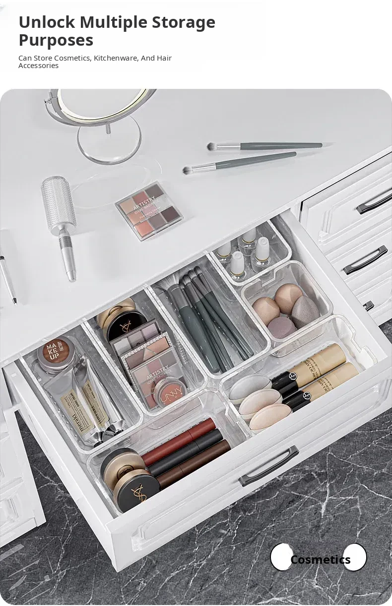 Expandable Drawer Organizer with Dividers - Makeup and Lipstick Storage Box for Tidy Vanity and Dorm Room Organization