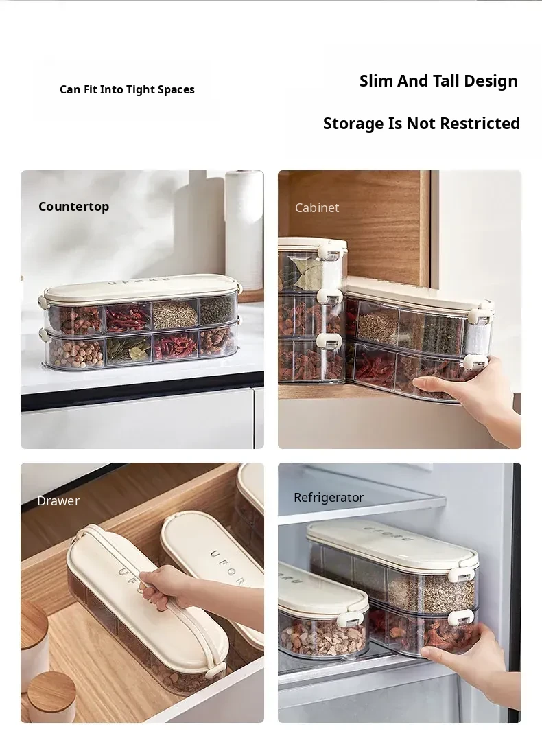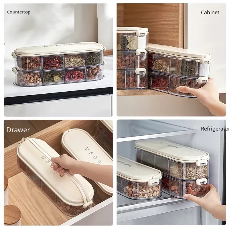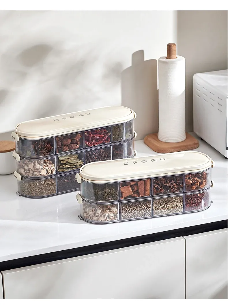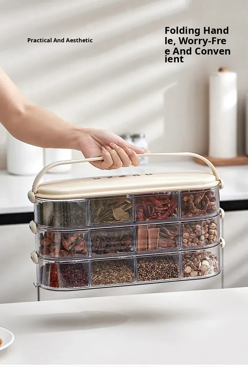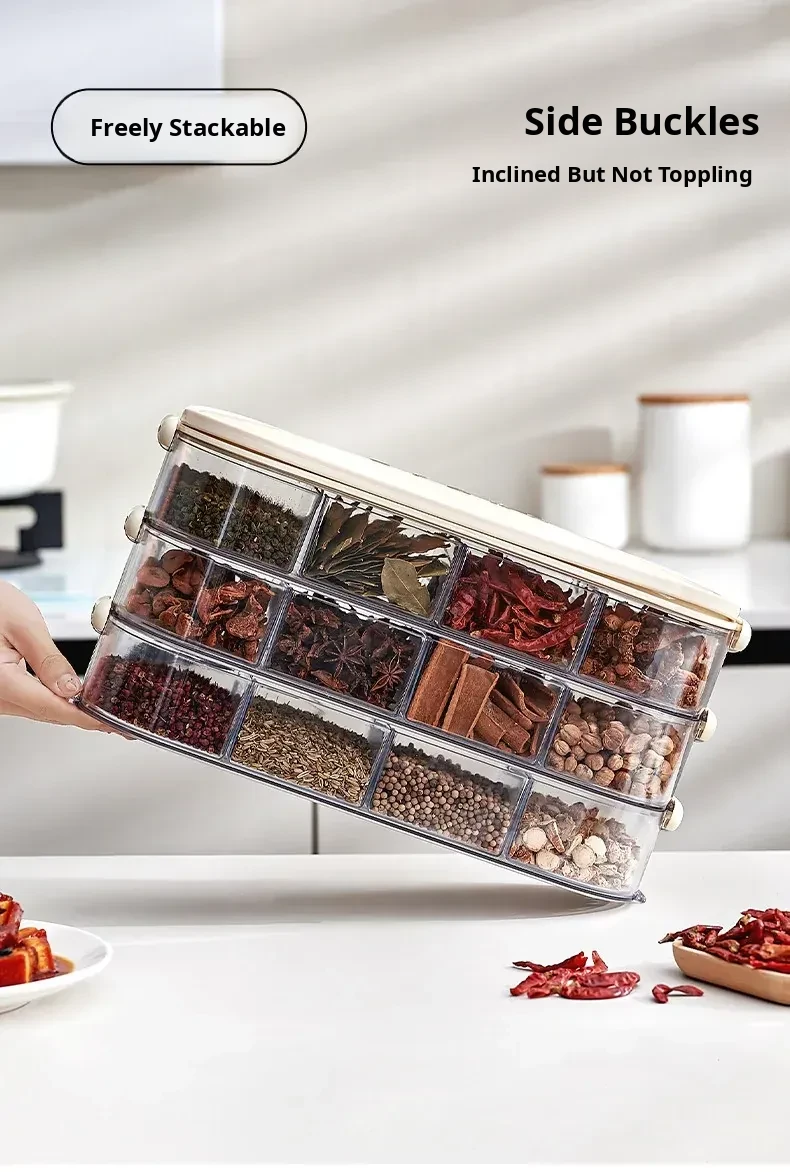 Food-Grade Spice Storage Box - Multi-Layer Sealed Organizer for Kitchen with Dividers for Pepper, Seasonings, and Condiments - Keep Your Spices Fresh and Neat!