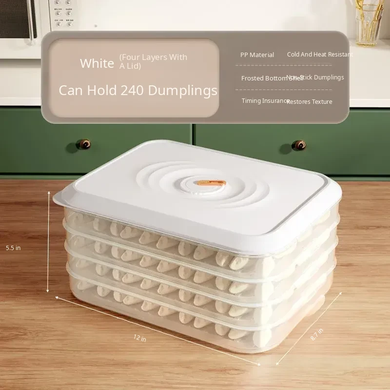 Milk White [Four Layers and One Cover] Can Hold 240 Dumplings/Anti-Stick Bottom/Anti-Freeze Cracking