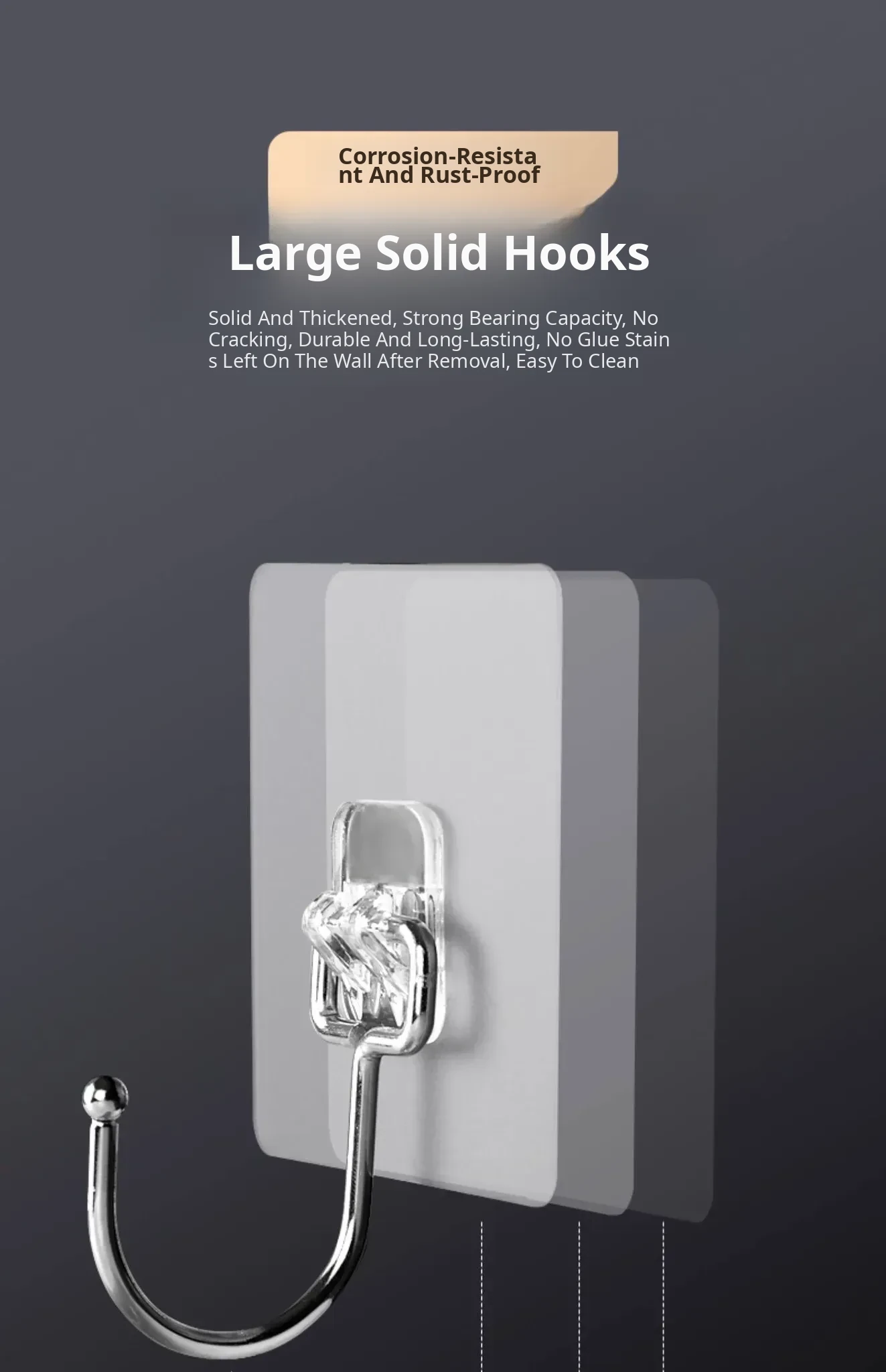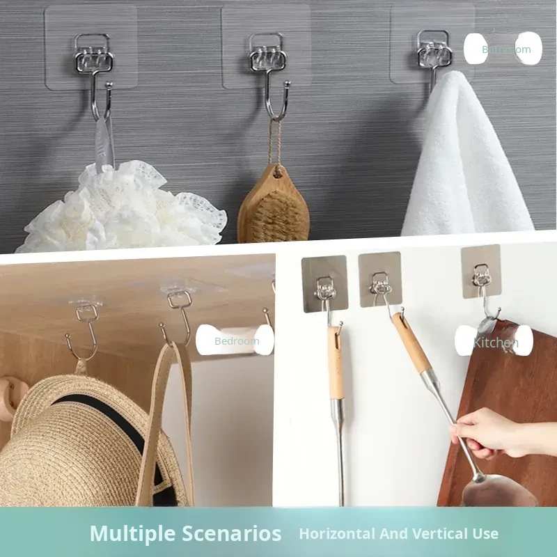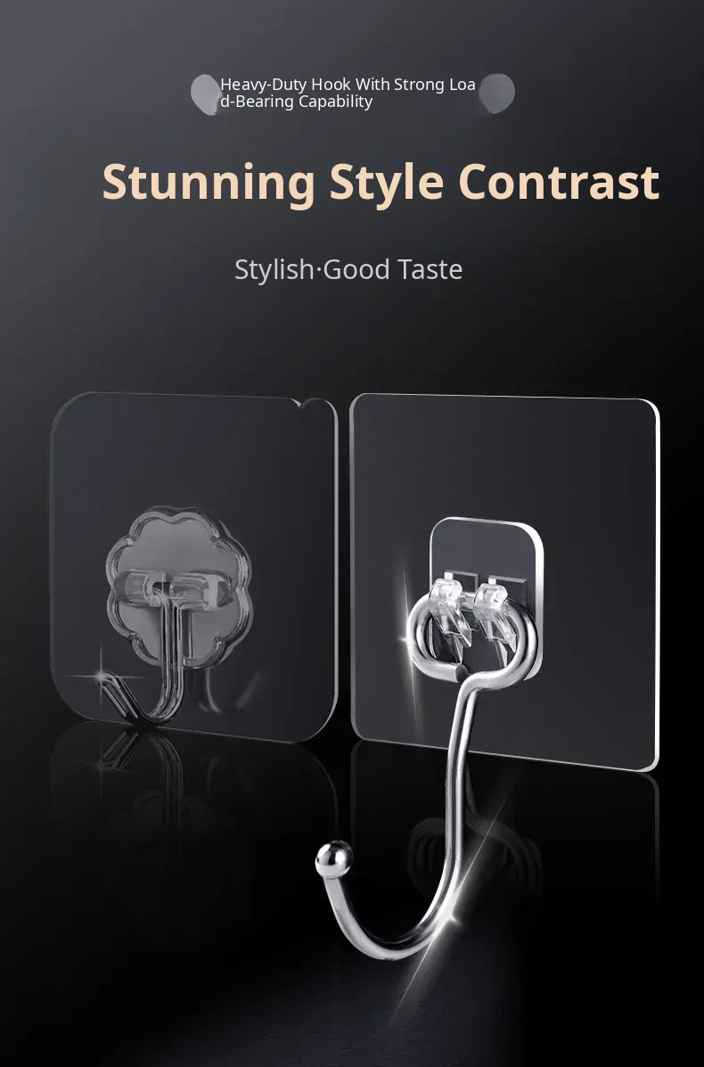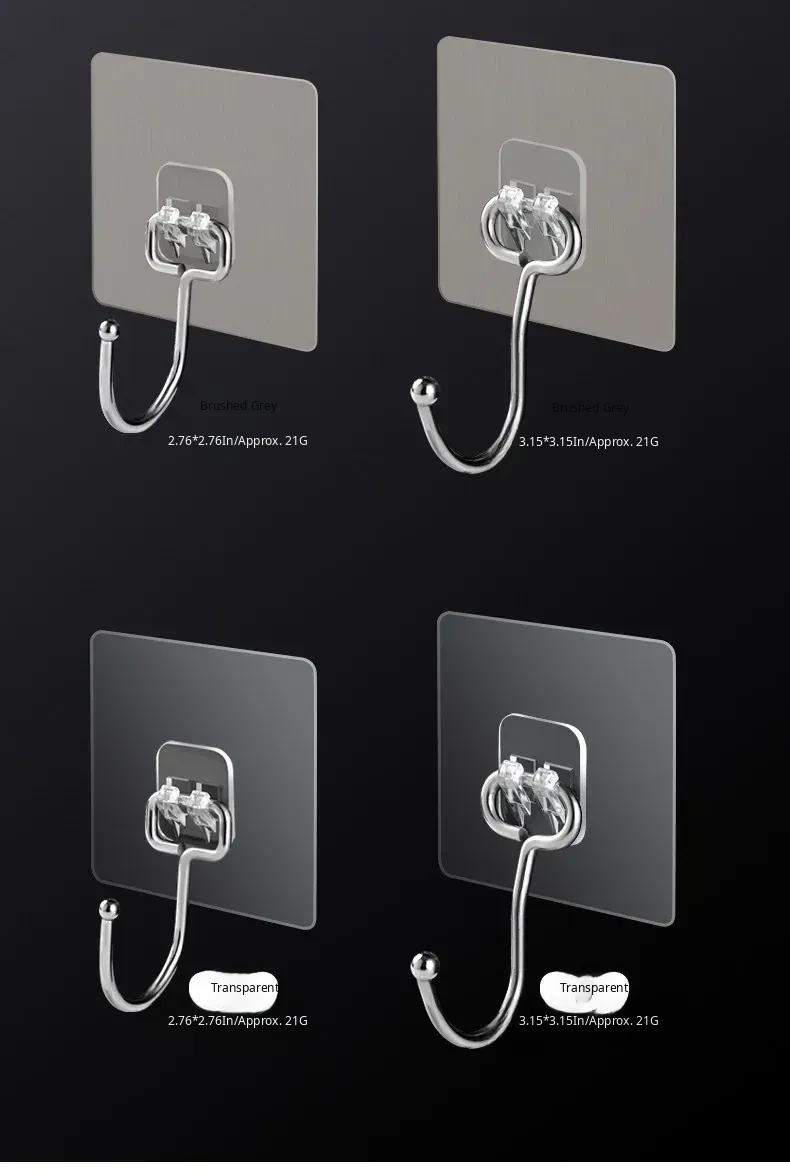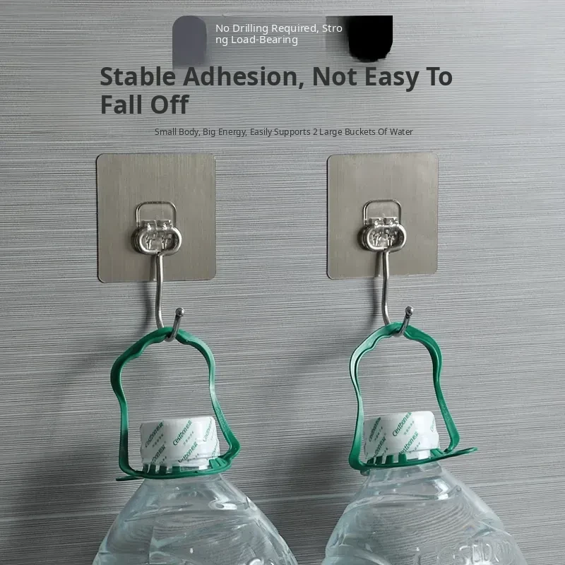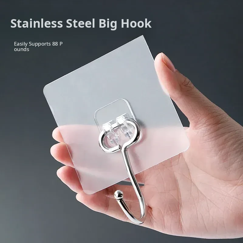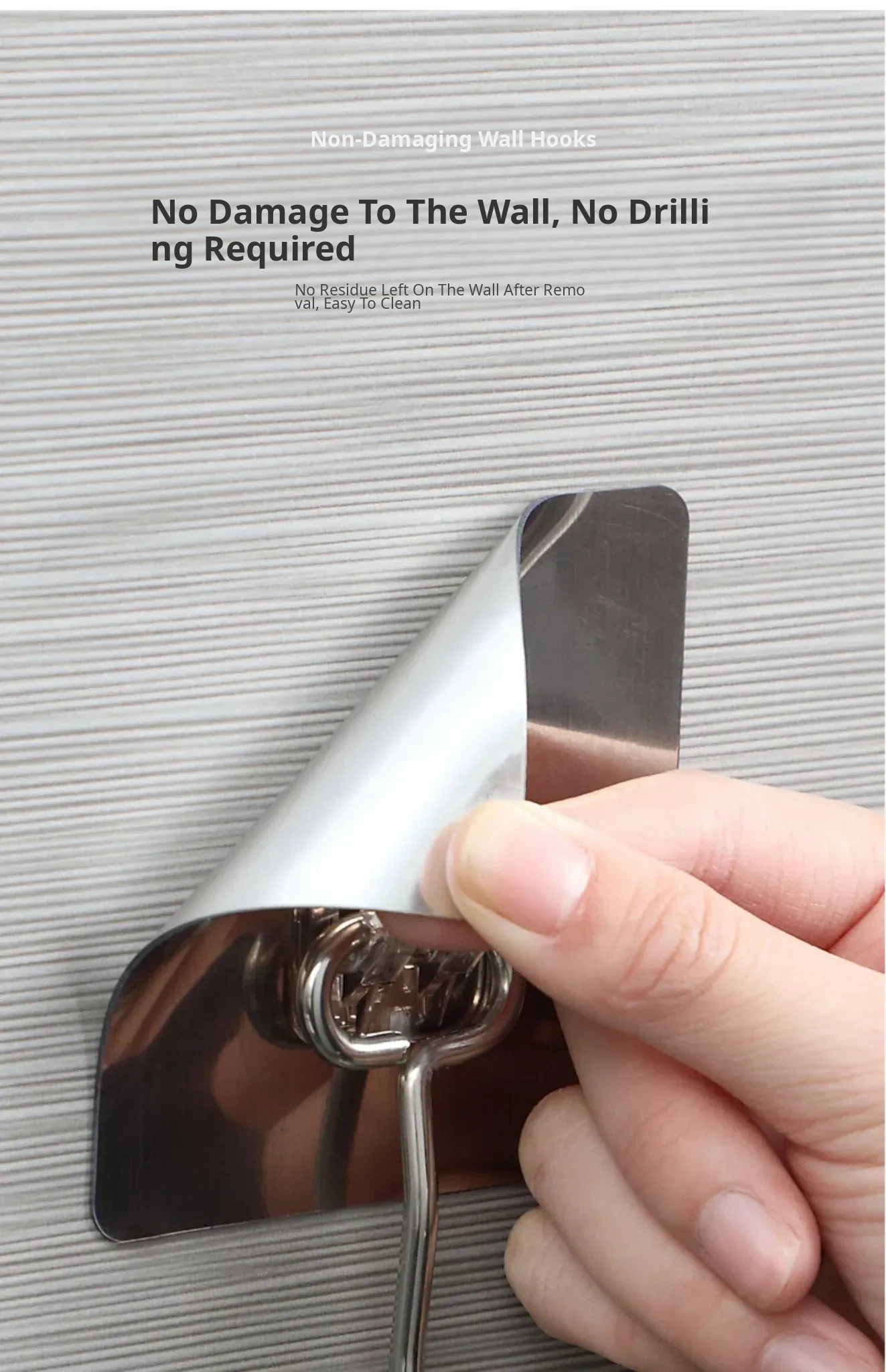 Heavy-Duty No-Drill Wall Hooks with Strong Adhesive - Stainless Steel Coat Hangers for Kitchen and Door - Damage-Free Stick-On Hooks