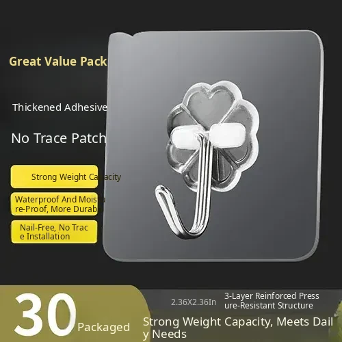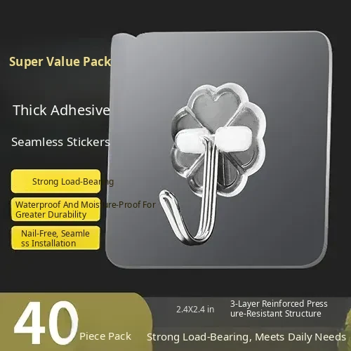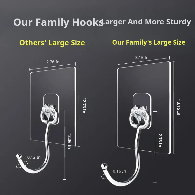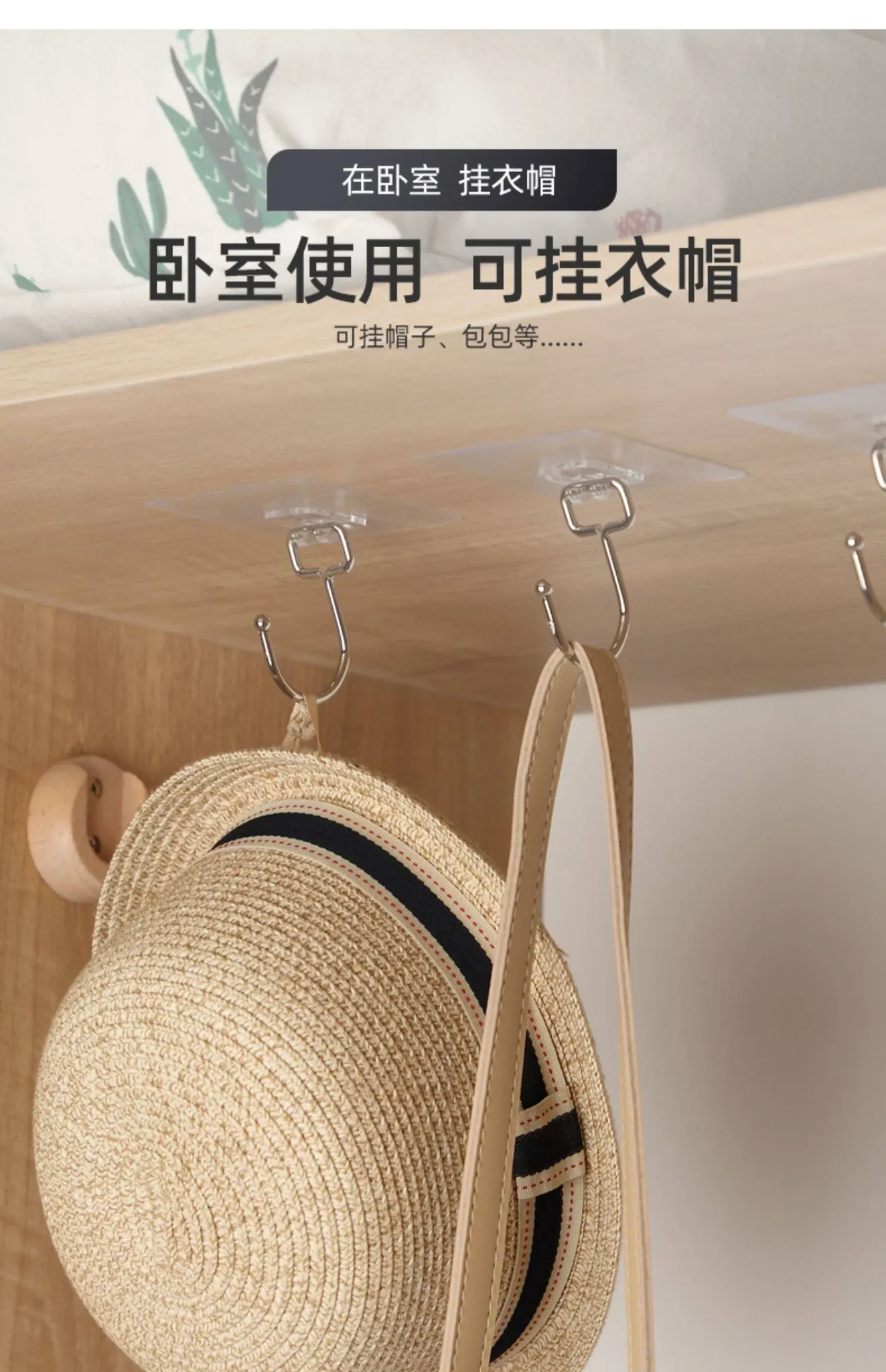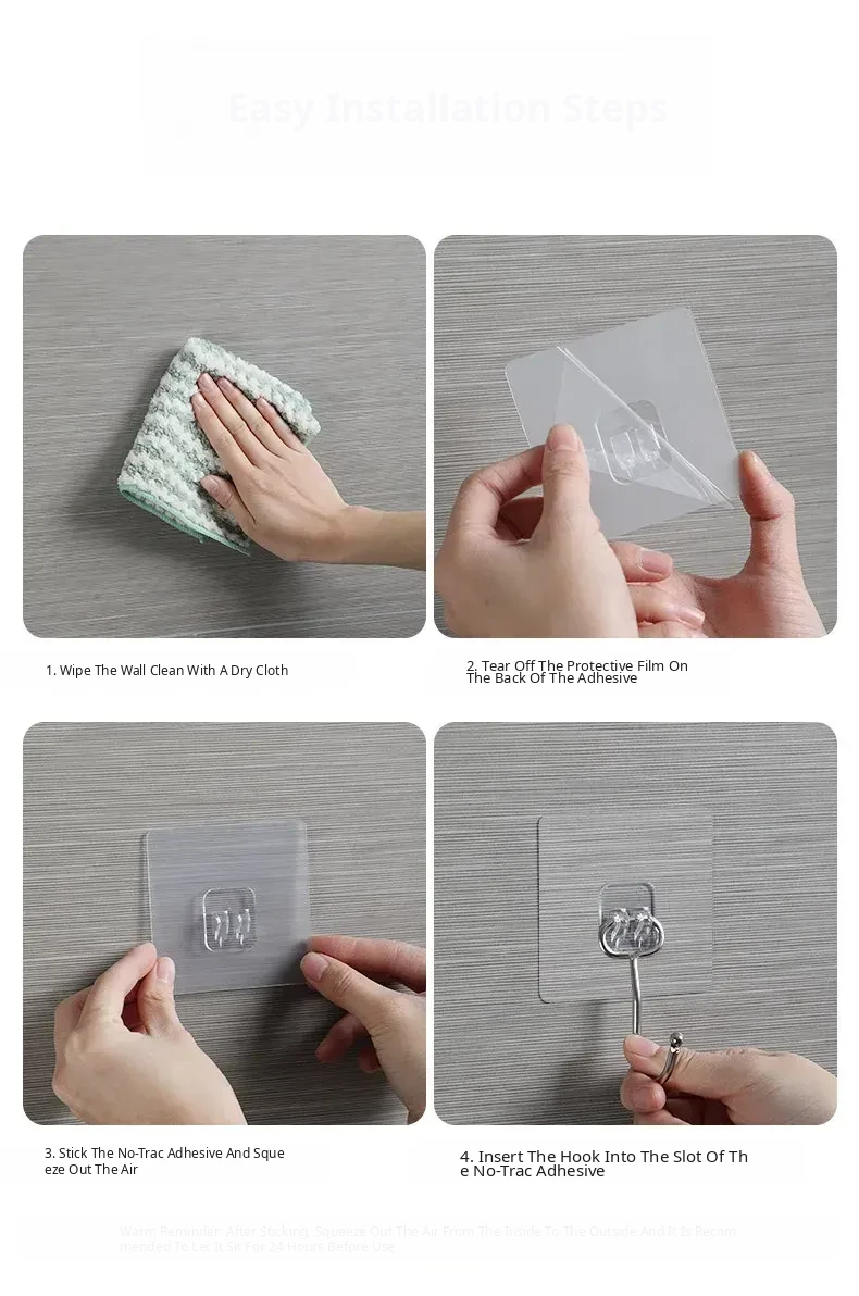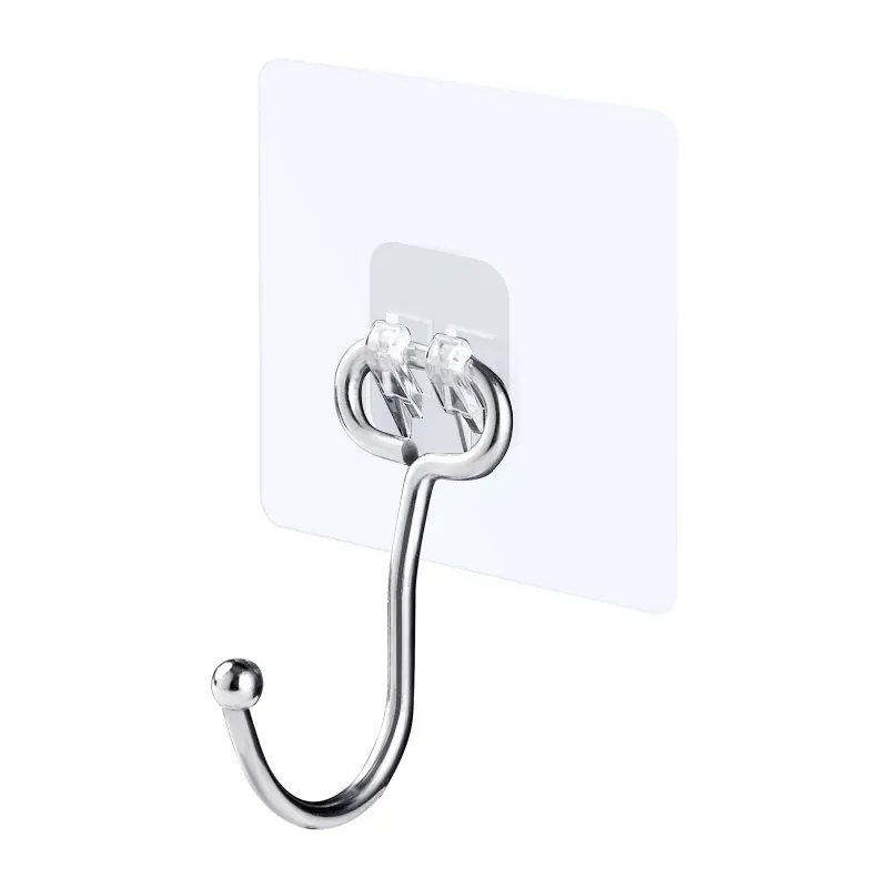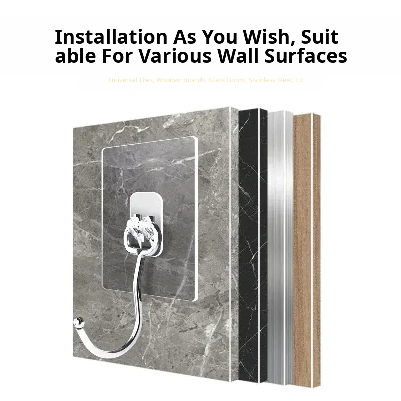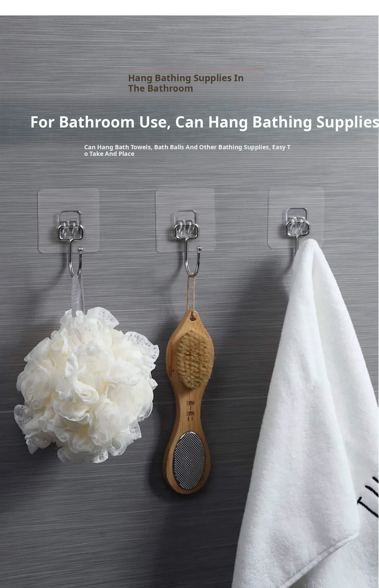 Heavy-Duty No-Drill Wall Hooks with Strong Adhesive - Stainless Steel Coat Hangers for Kitchen and Door - Damage-Free Stick-On Hooks