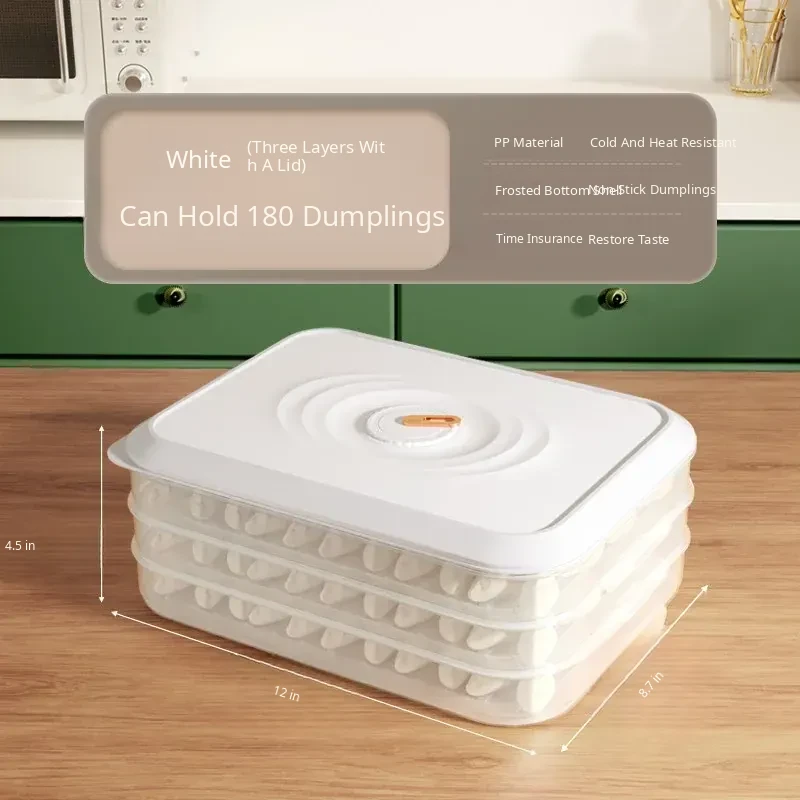 Milk White [Three Layers and One Cover] Can Hold 180 Dumplings/Anti-Stick Bottom/Anti-Freeze Cracking