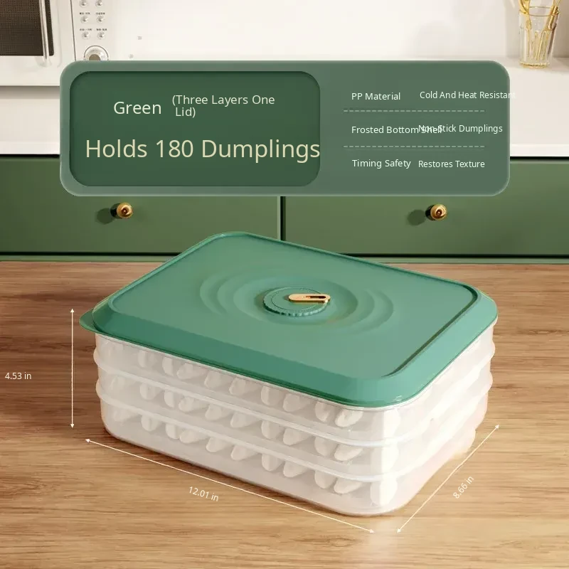 Matcha Green [Three Layers and One Cover] Can Hold 180 Dumplings/Anti-Stick Bottom/Anti-Freeze Cracking