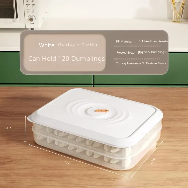 Milk White [Two Layers and One Cover] Can Hold 120 Dumplings/Anti-Stick Bottom/Anti-Freeze Cracking
