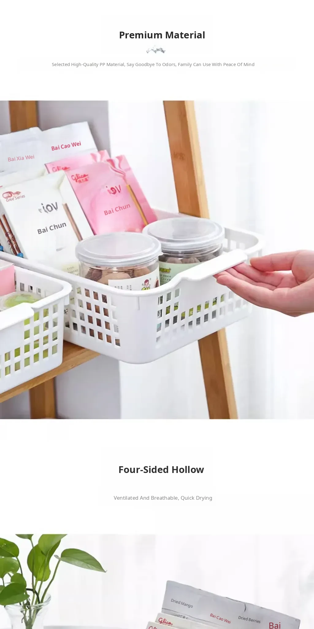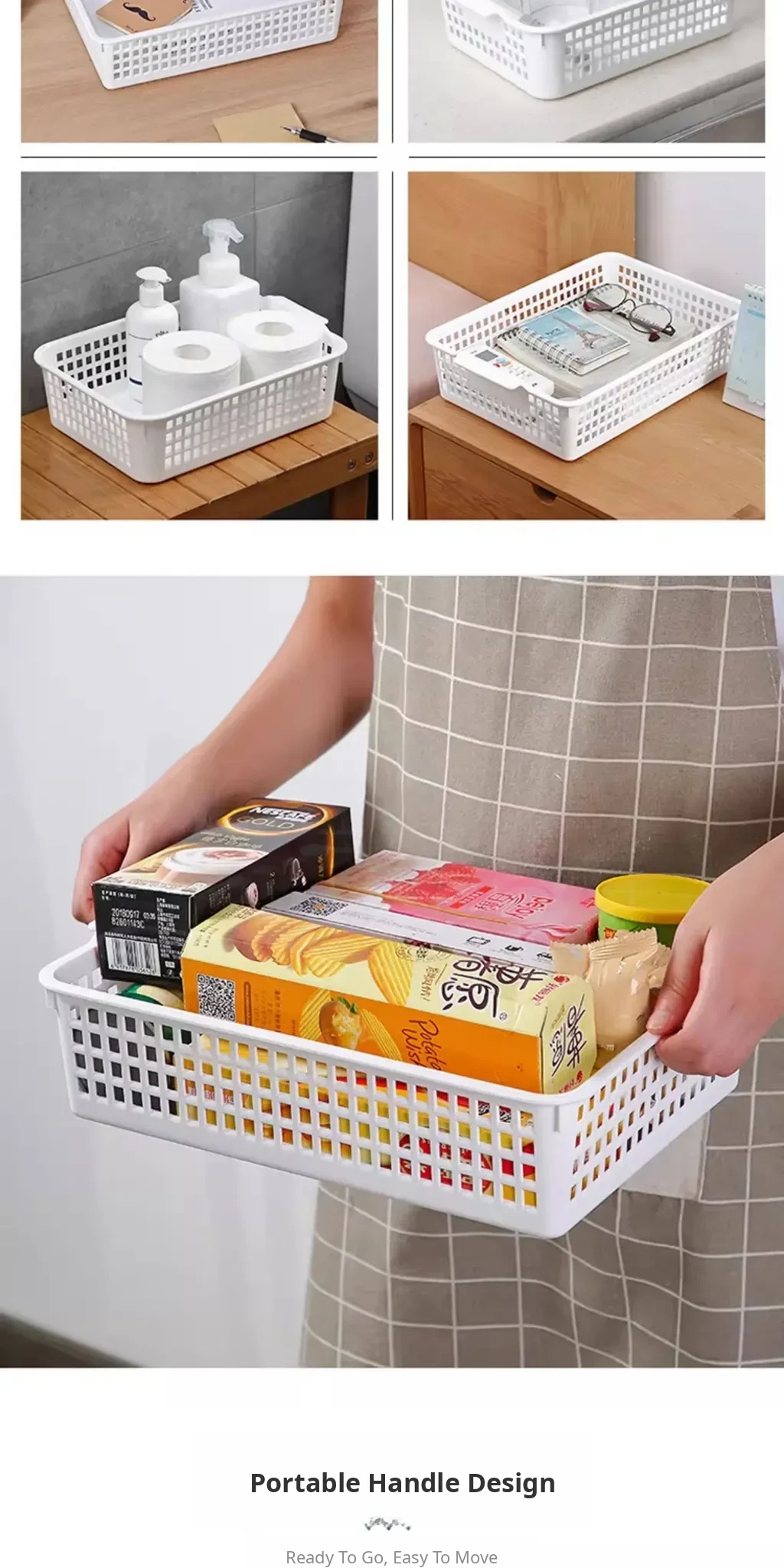 Home Plastic Storage Basket - Rectangular Snack and Fruit Organizer, Perfect for Keeping Your Space Tidy and Stylish! Ideal for Kitchen, Living Room, and Dining Area.