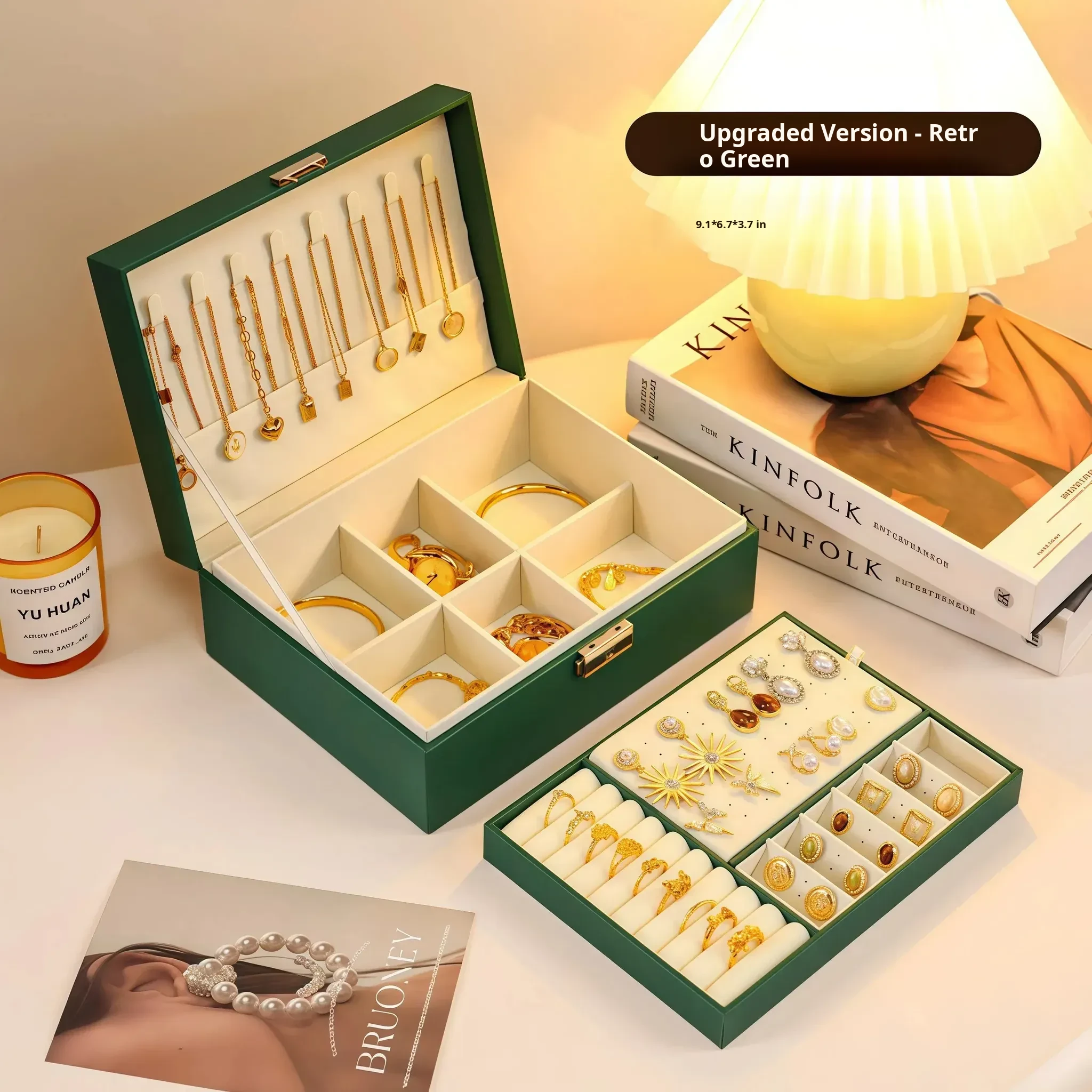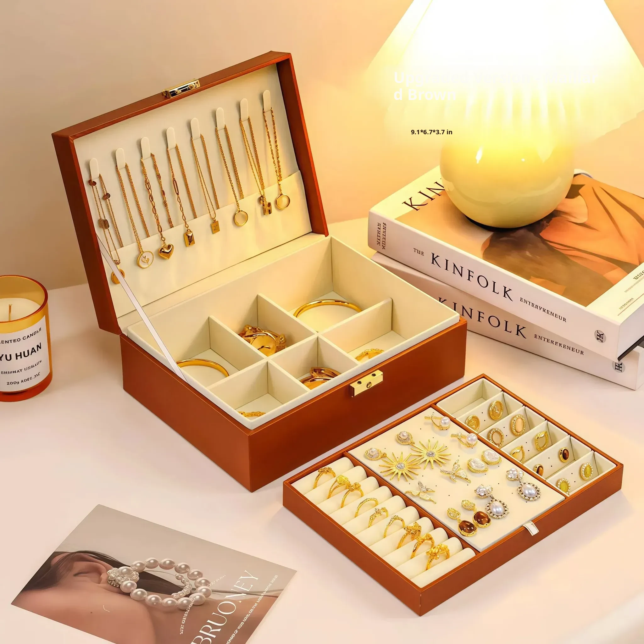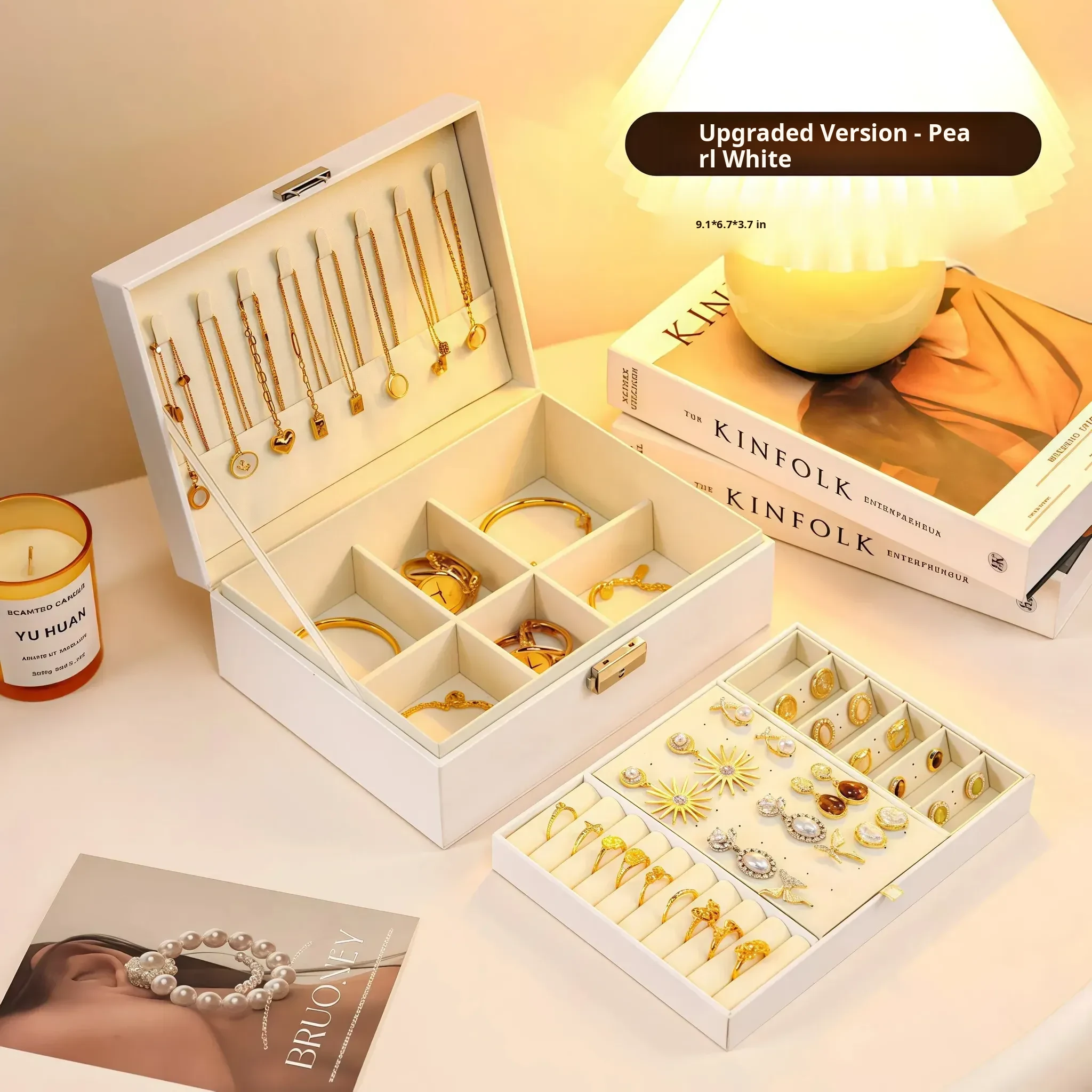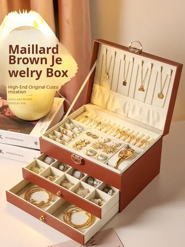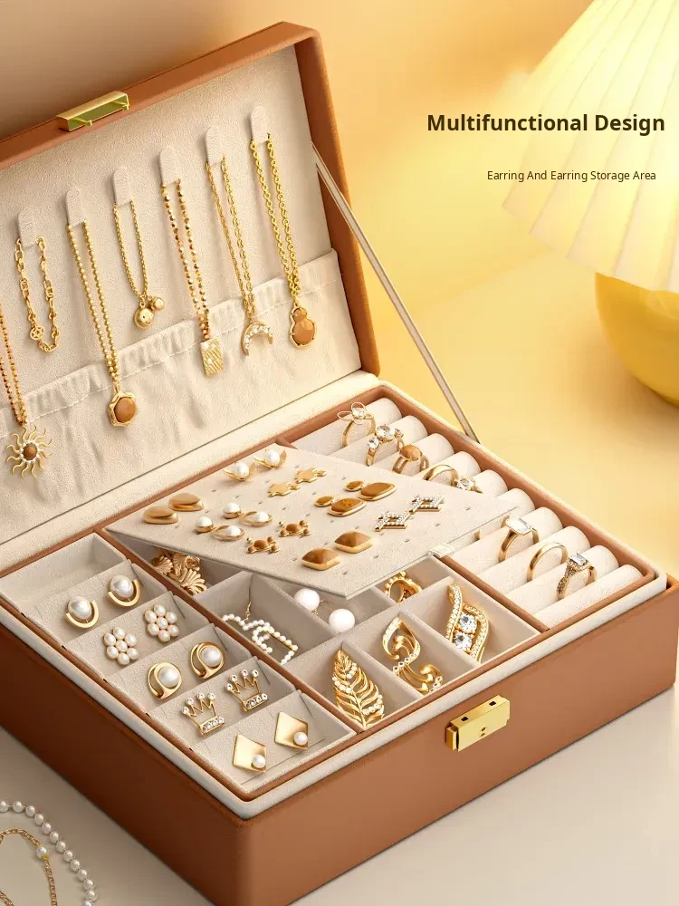 Luxury Gold Jewelry Box - Elegant and Stylish Anti-Oxidation Organizer for Earrings, Necklaces, and Accessories - Perfect for Safely Storing Your Precious Items