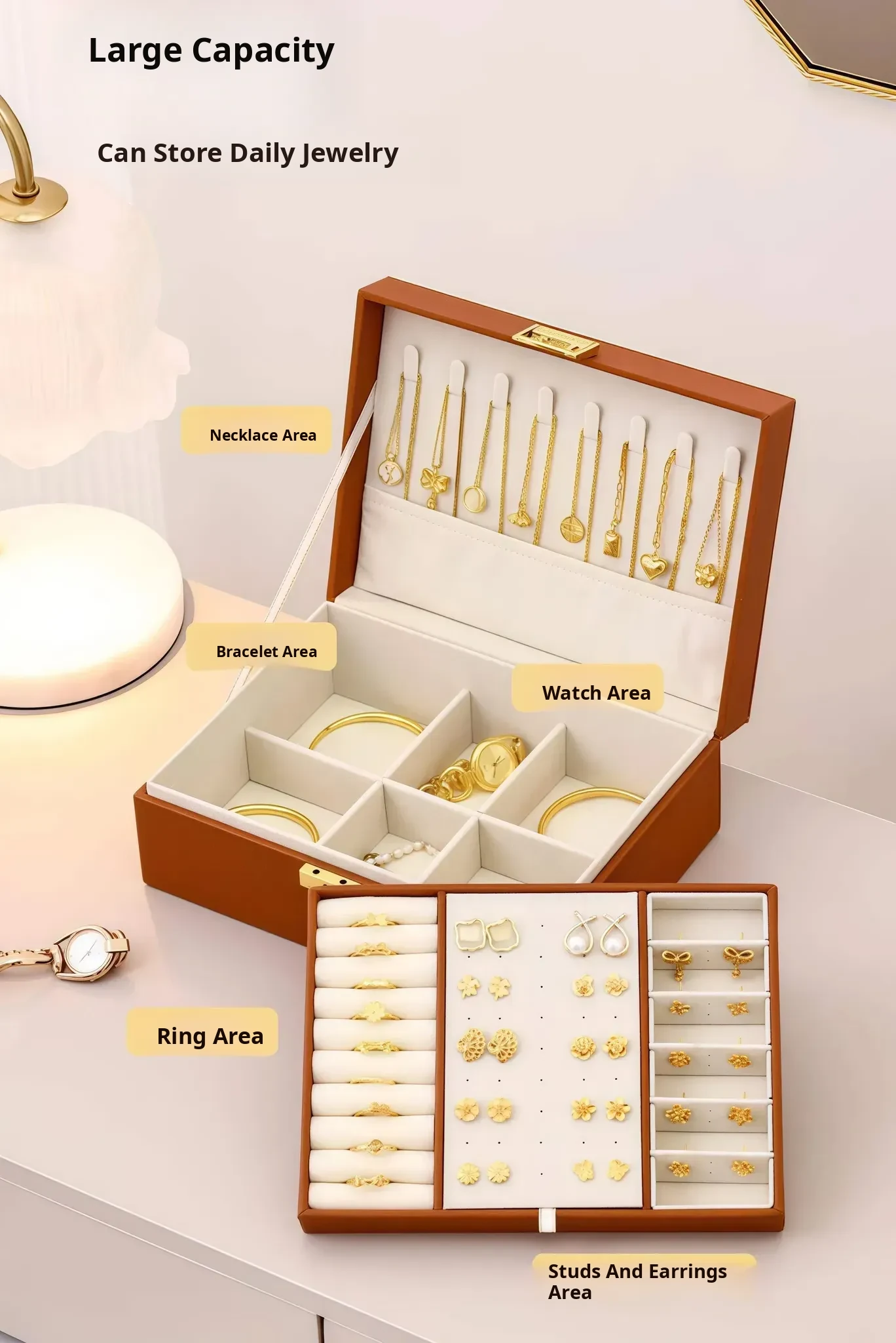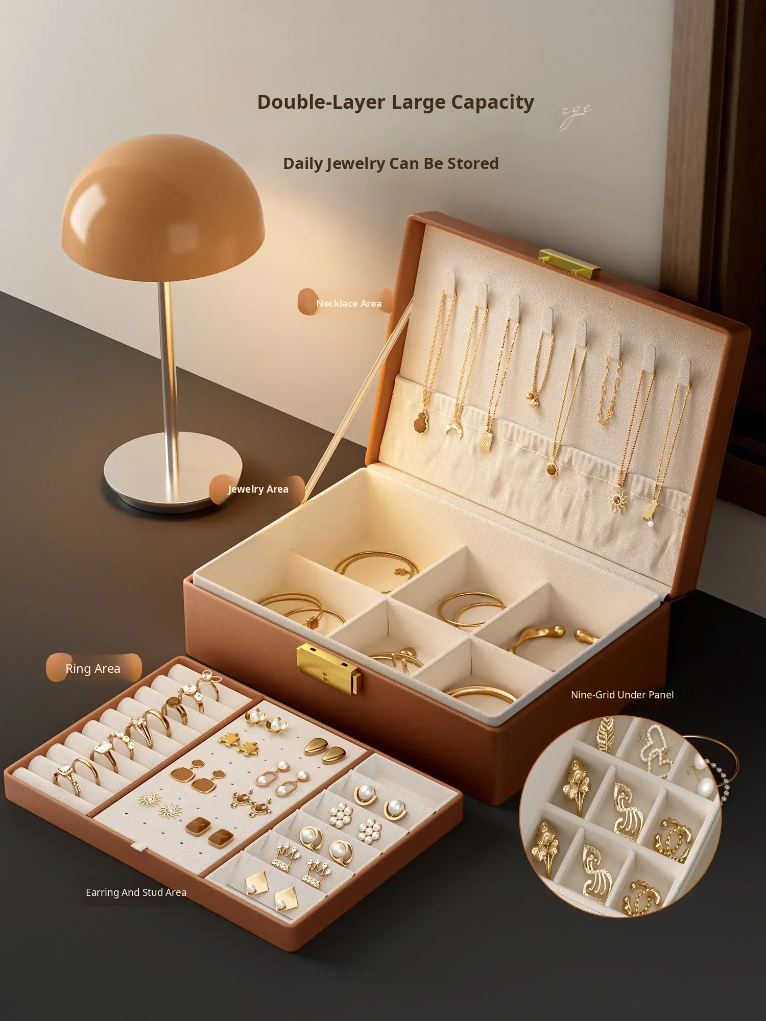 Maillard Brown-Double Layer [Lockable + Large Capacity]
