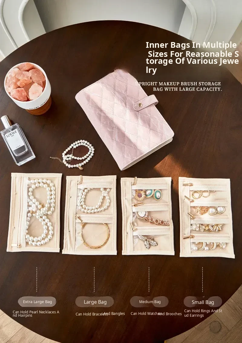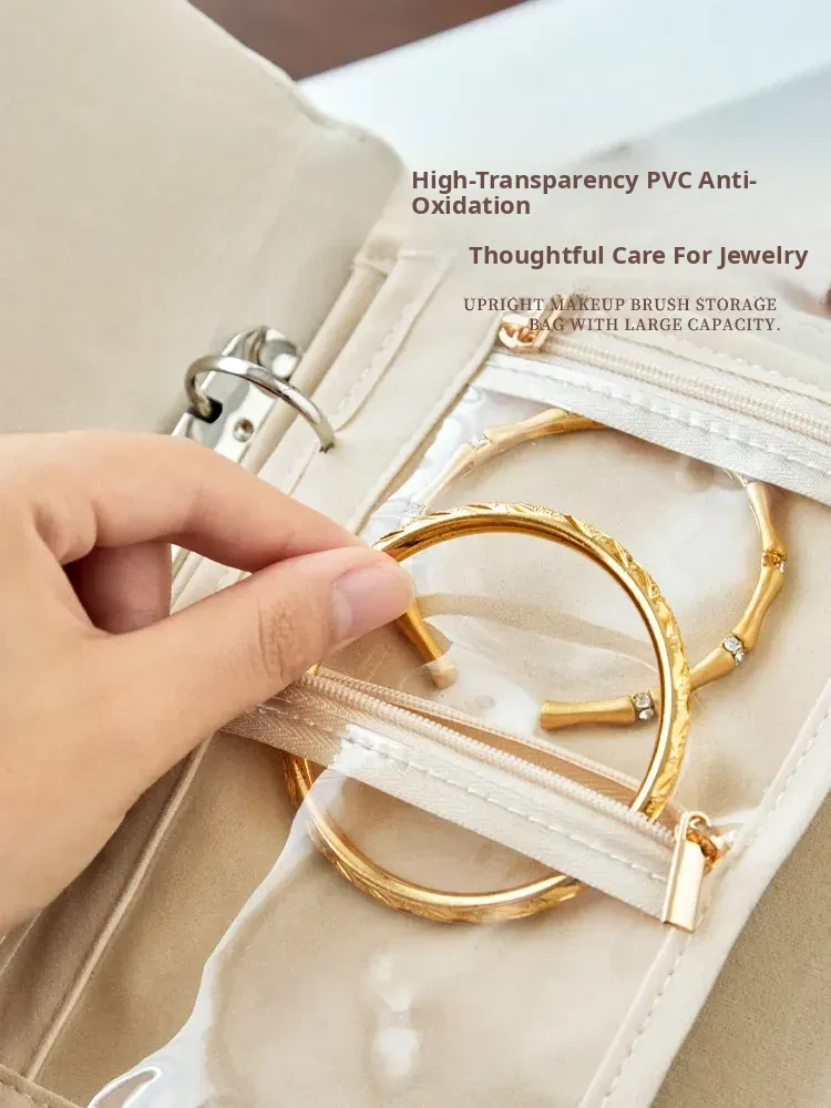 Luxury Gold Jewelry Organizer Travel Case - Portable Anti-Oxidation Storage Bag for Earrings, Necklaces, Bracelets, and Rings