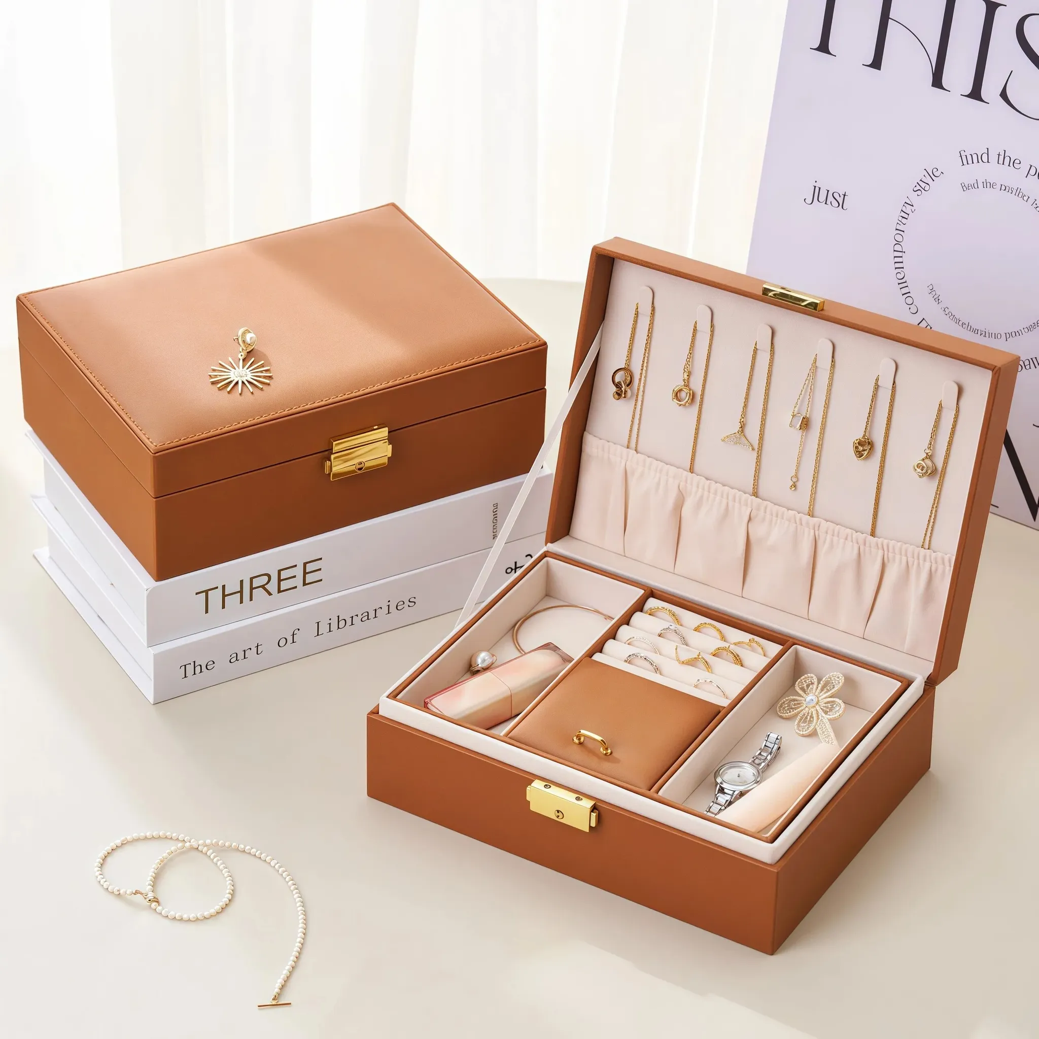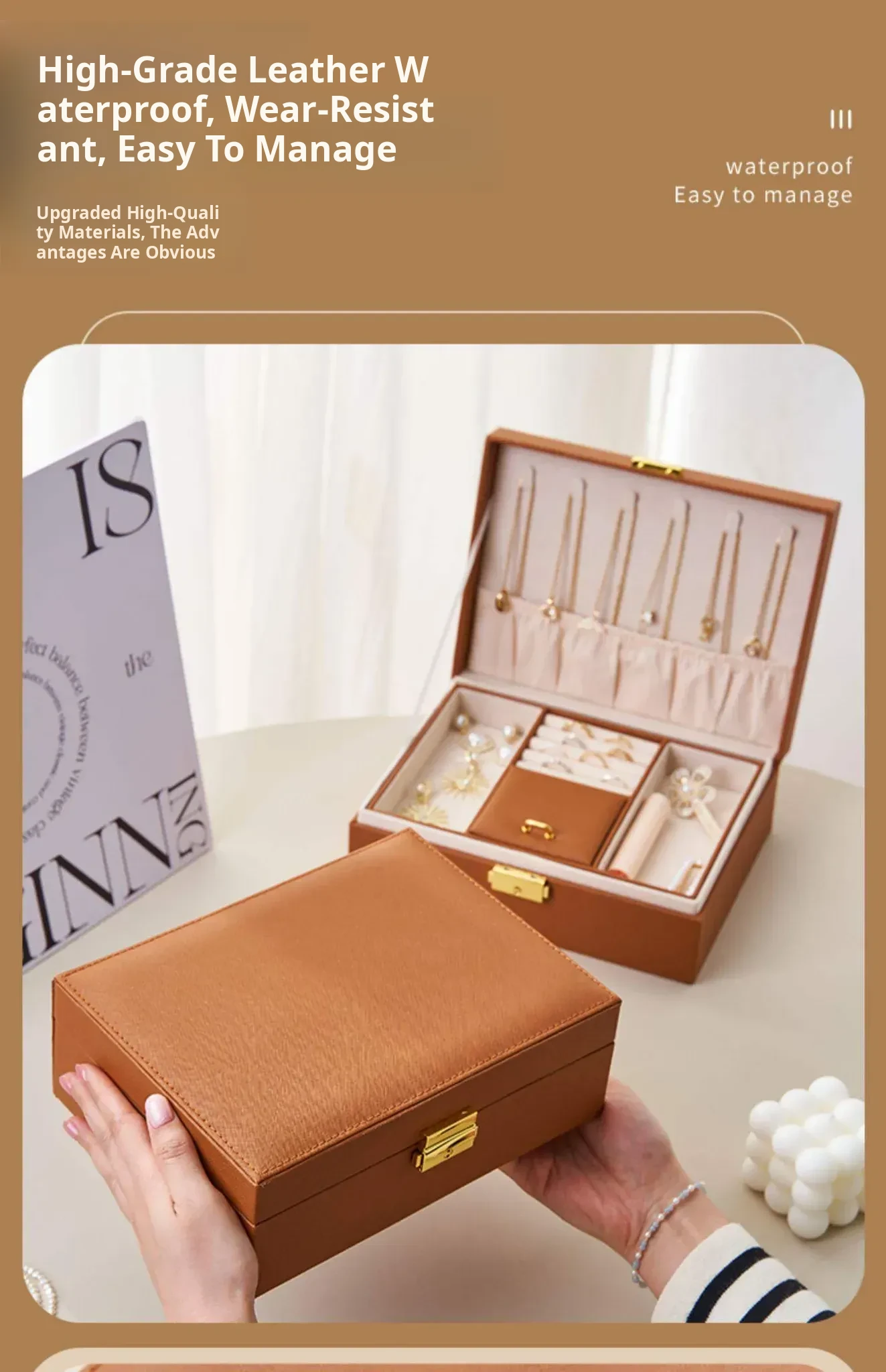 Luxury Jewelry Organizer Box - Elegant and Spacious Storage for Earrings, Bracelets, Rings, and More - Perfect for Keeping Your Precious Accessories Tidy and Accessible!