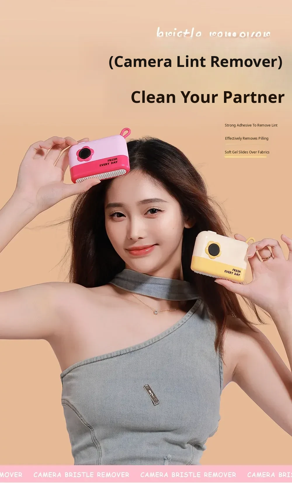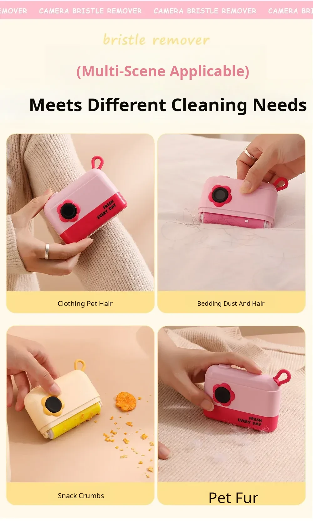 2025 Camera-Shaped Lint Roller (Sticky/Suction/Squeegee - 3-in-1 Function)