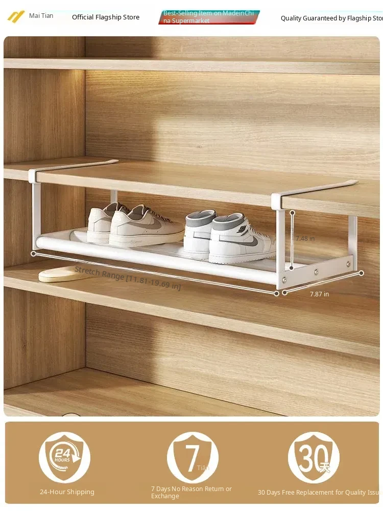 [Shoe Rack Divider] White [19.69in-35.43in]