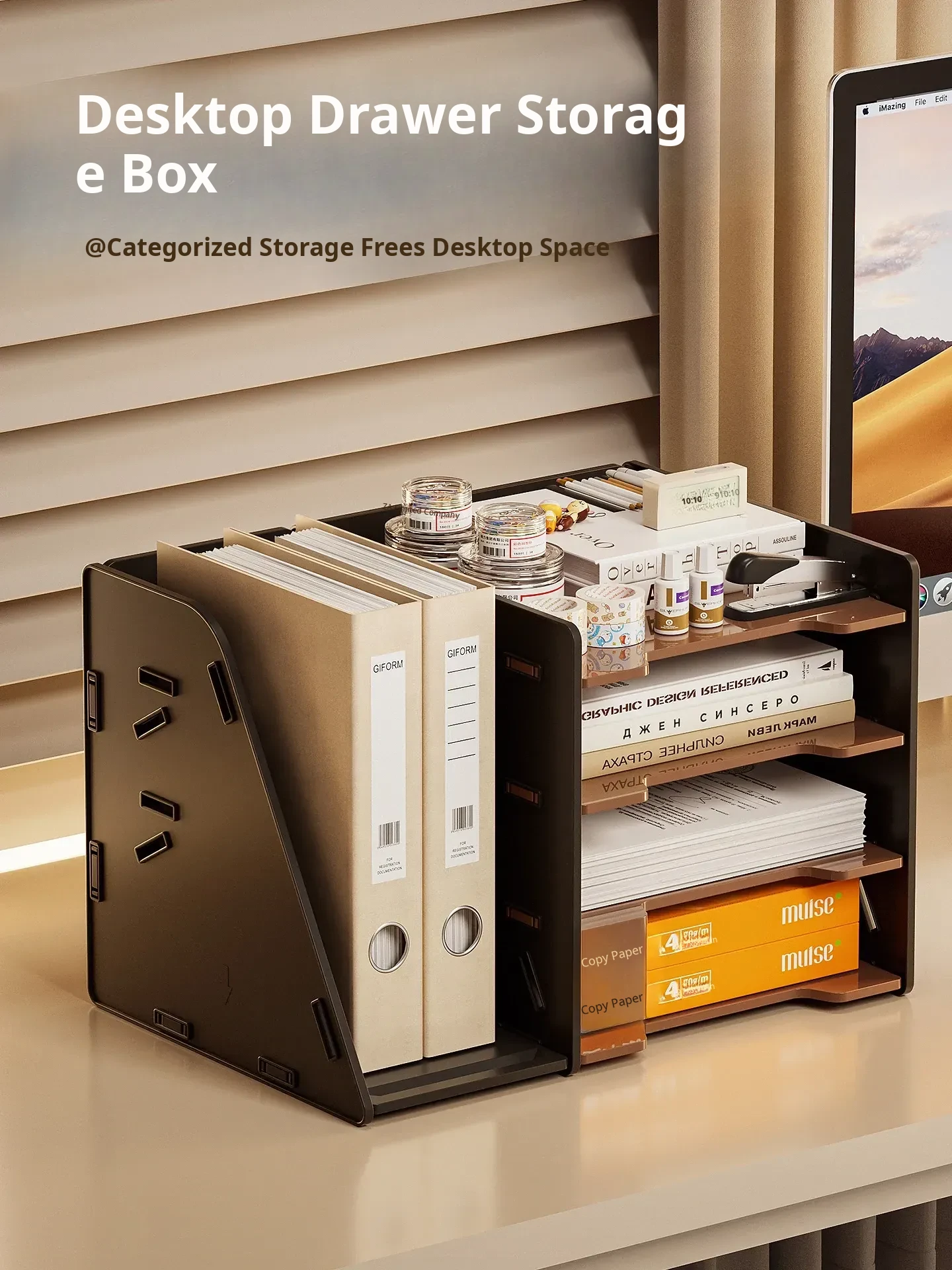 Document Desktop Storage Box [Black Large]