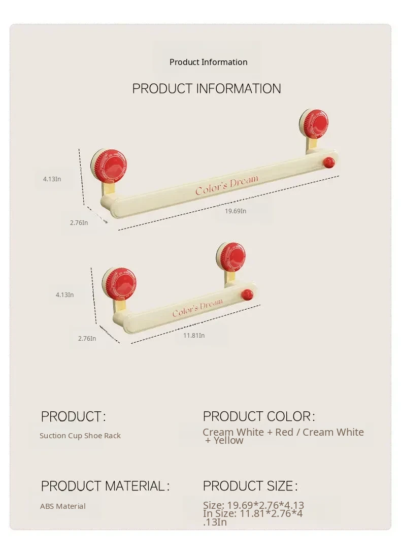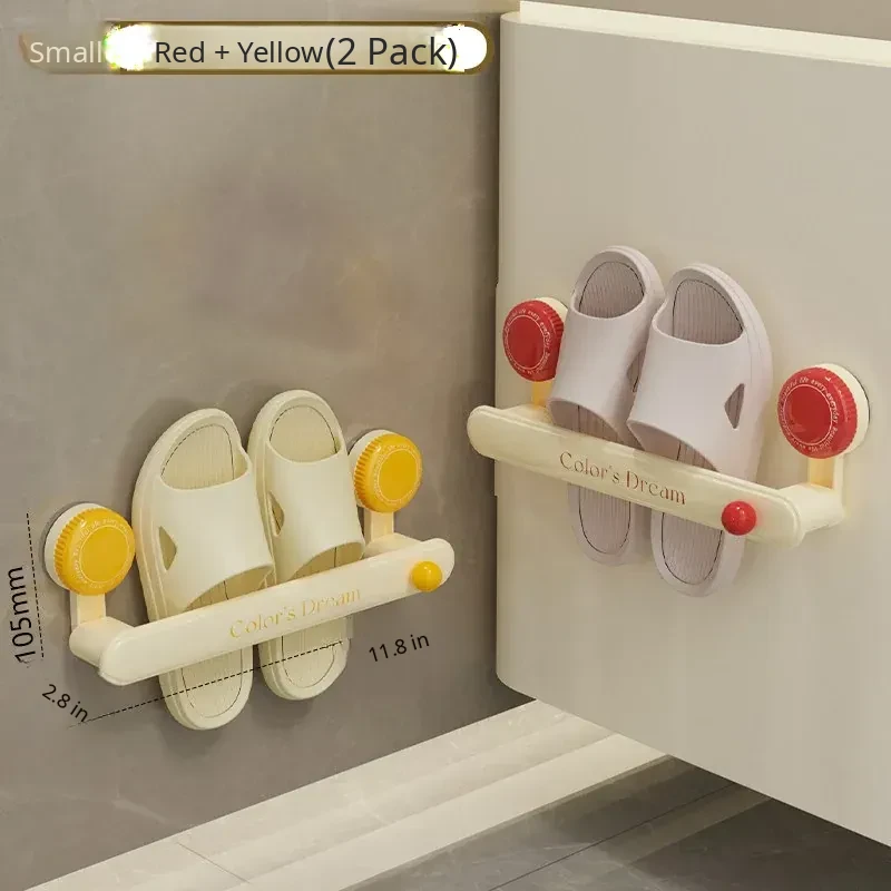 【Red + Yellow - Short】Holds 2 Pairs of Shoes | Suction Cup, No-Drill Installation