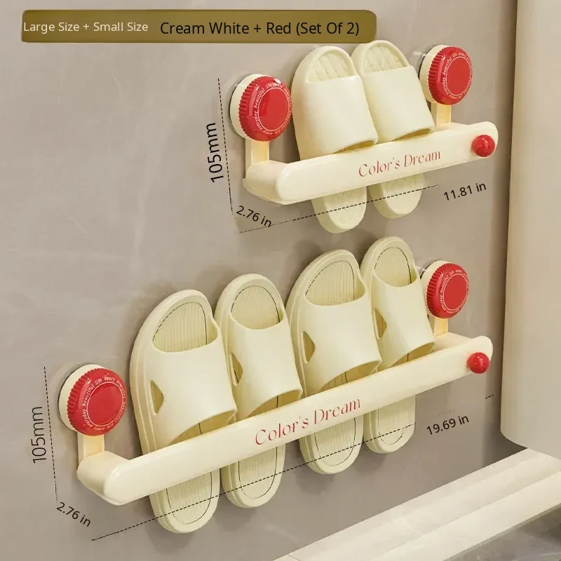 【Red - Short Style * 2】Holds 2 Pairs of Shoes | Suction Cup, No-Drill Installation